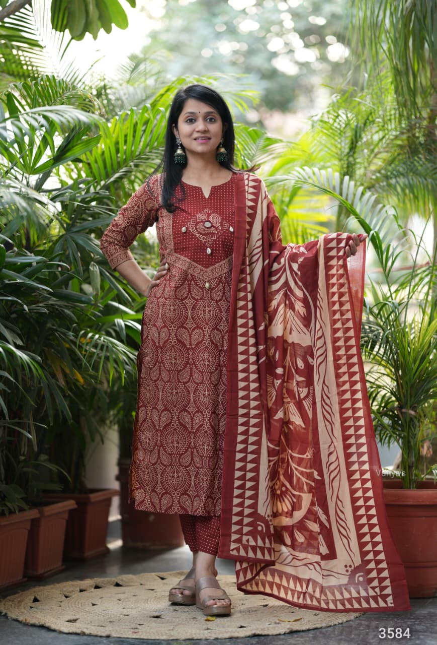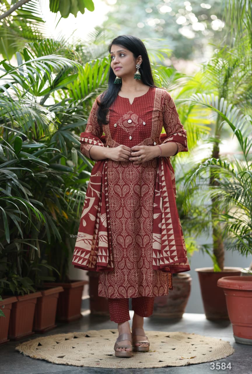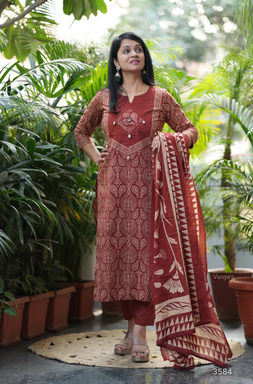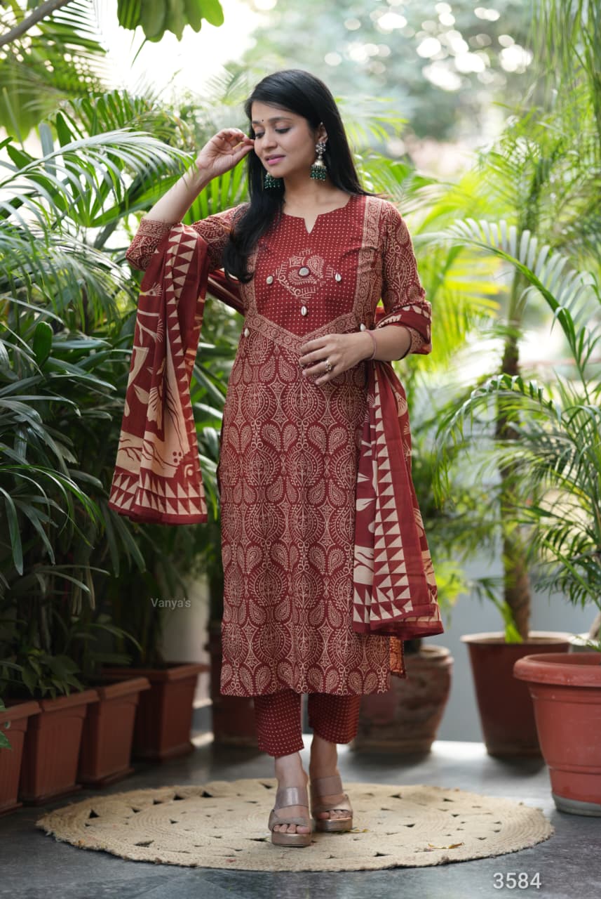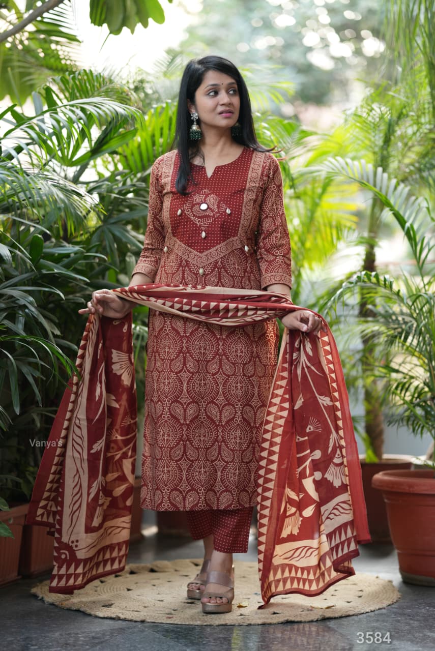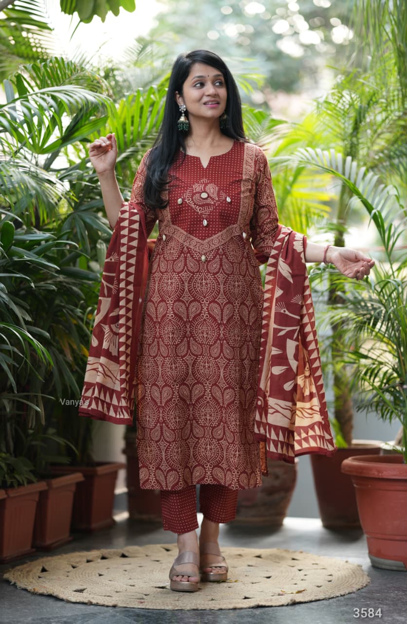 Adorn your appearance with this stunning ajrak cotton printed three piece suit , this kurta elegant as it looks!
