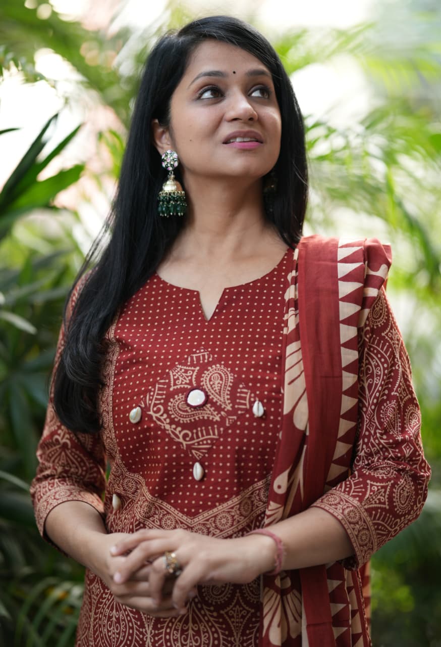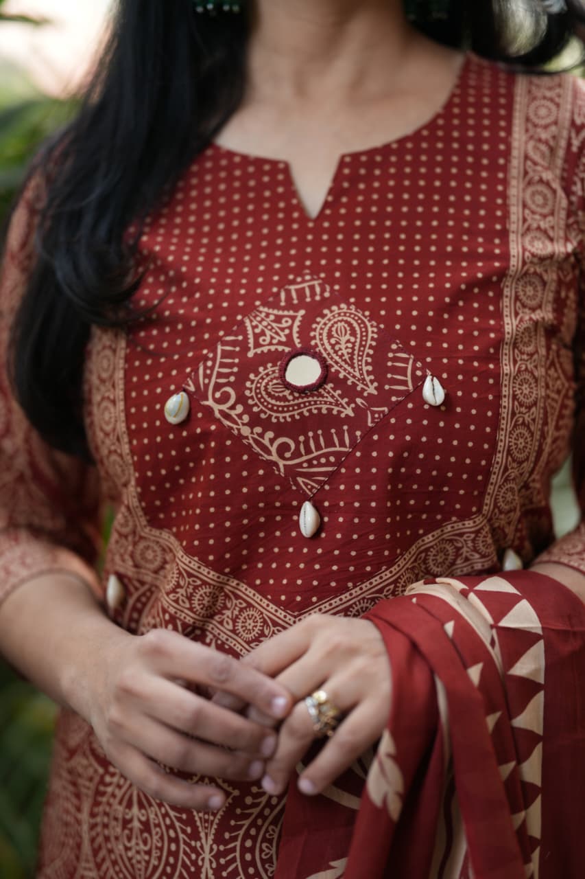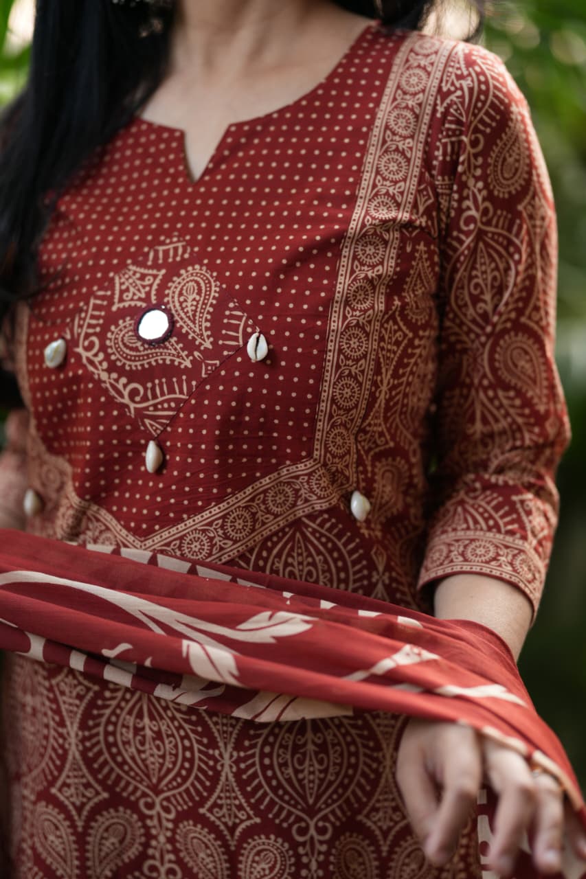 Ajrak cotton print Mirror and seap work