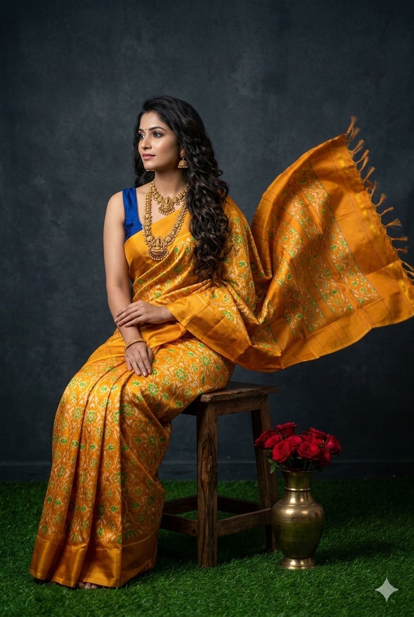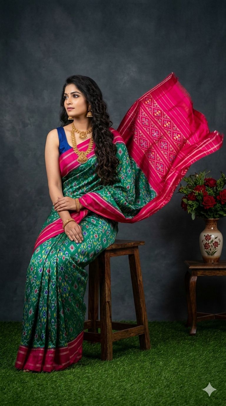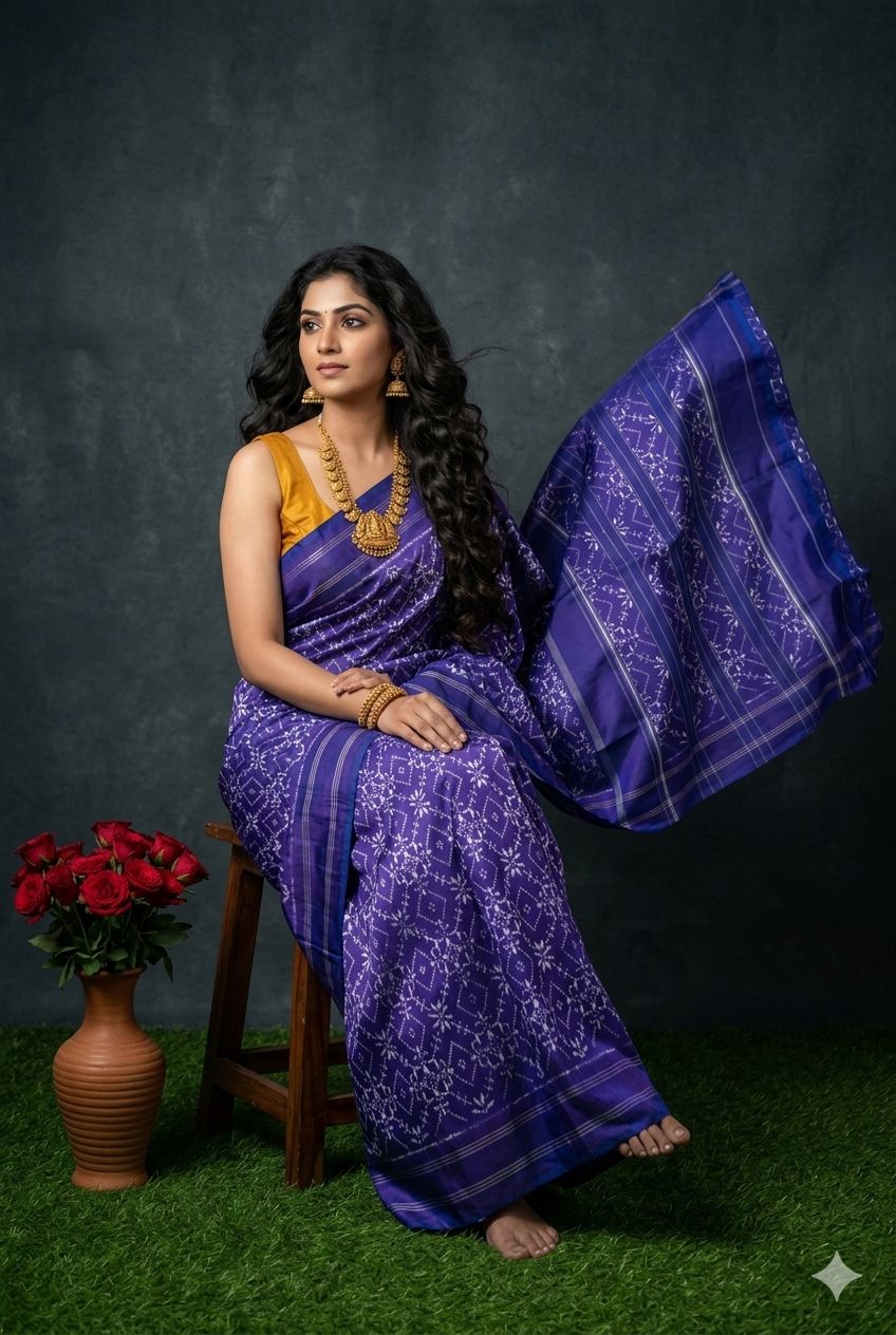 The Pochampally Pure Silk Saree is a symbol of South Indian weaving excellence. Originating from Bhoodan Pochampally, these sarees are famous for their intricate Ikat dyeing technique, where the yarns are tie-dyed before weaving to create stunning geometric and traditional patterns.