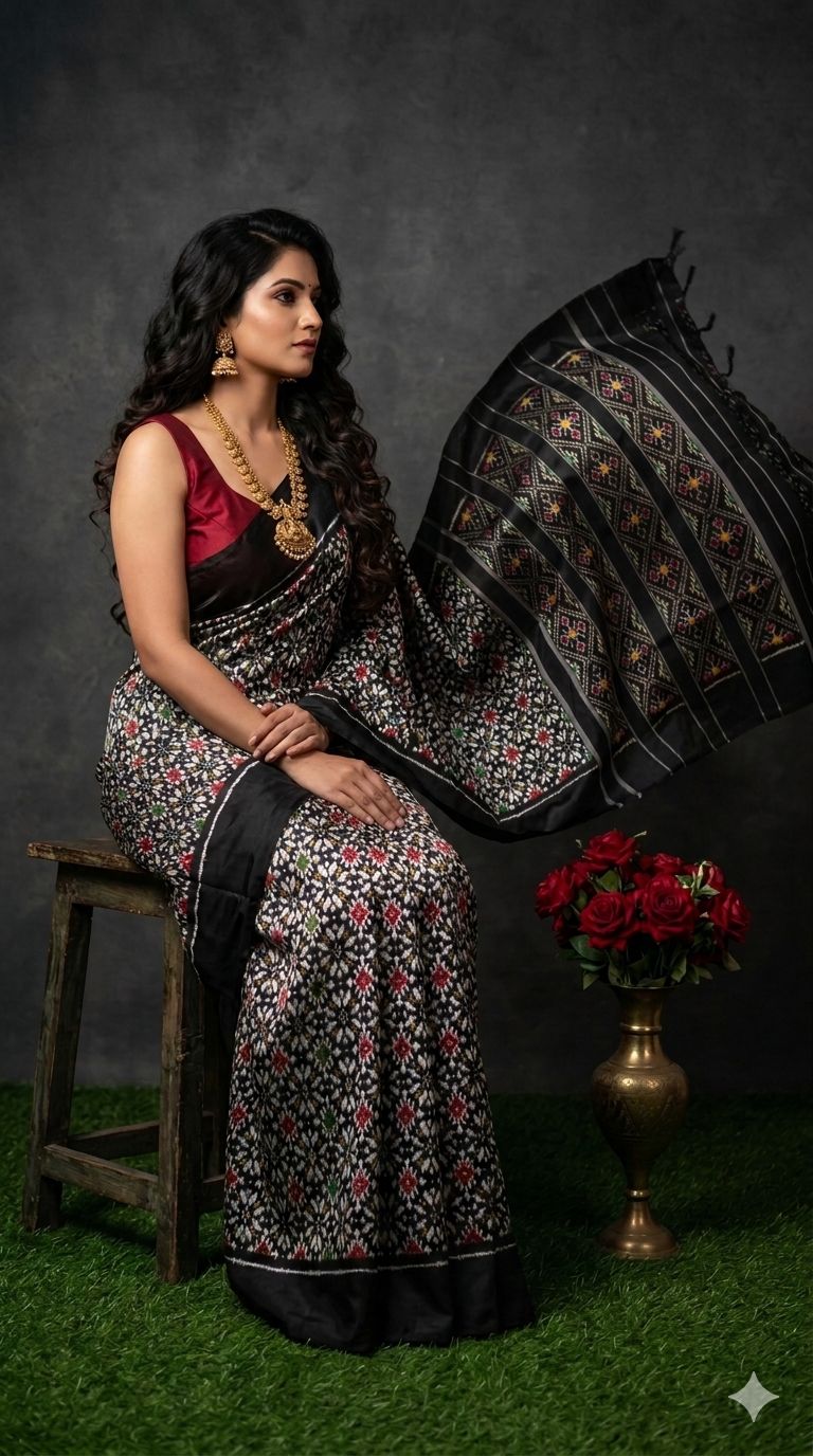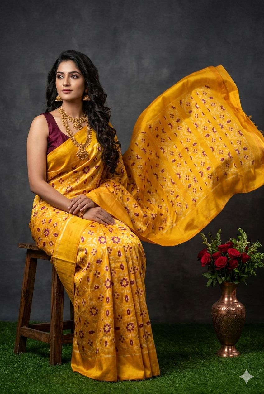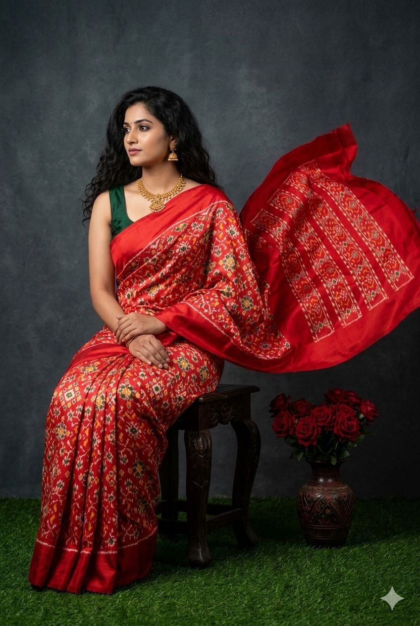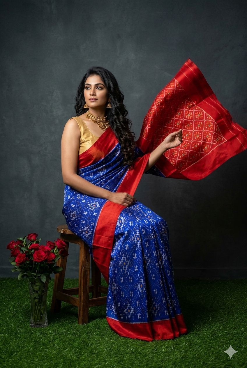 The Pochampally Pure Silk Saree is a symbol of South Indian weaving excellence. Originating from Bhoodan Pochampally, these sarees are famous for their intricate Ikat dyeing technique, where the yarns are tie-dyed before weaving to create stunning geometric and traditional patterns.