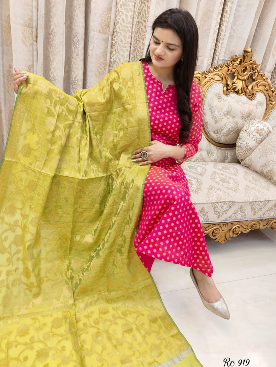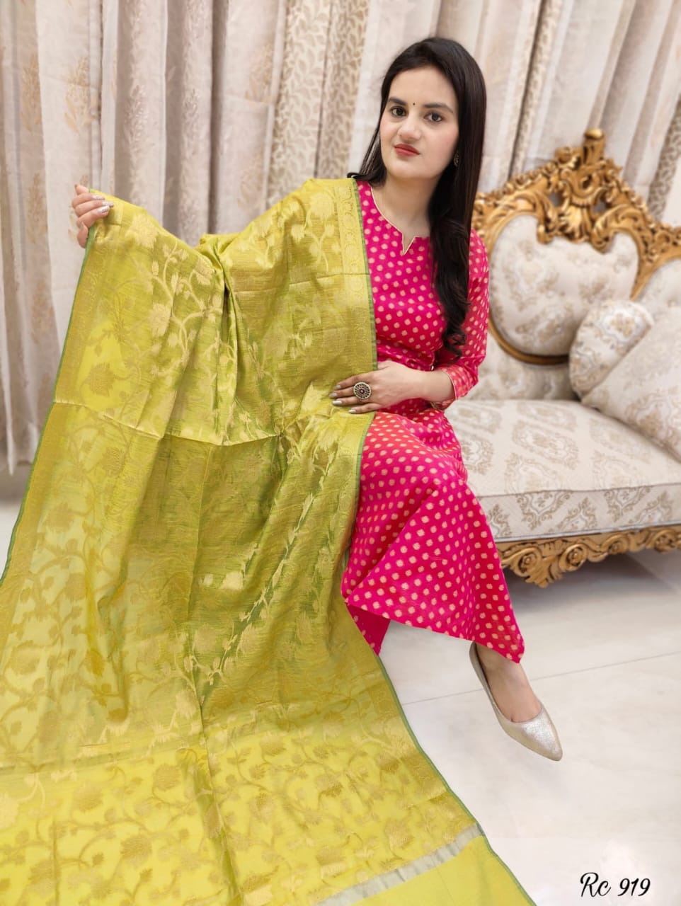 *premium banarsi Silk Kurta with zari work all over with attached cotton lining*