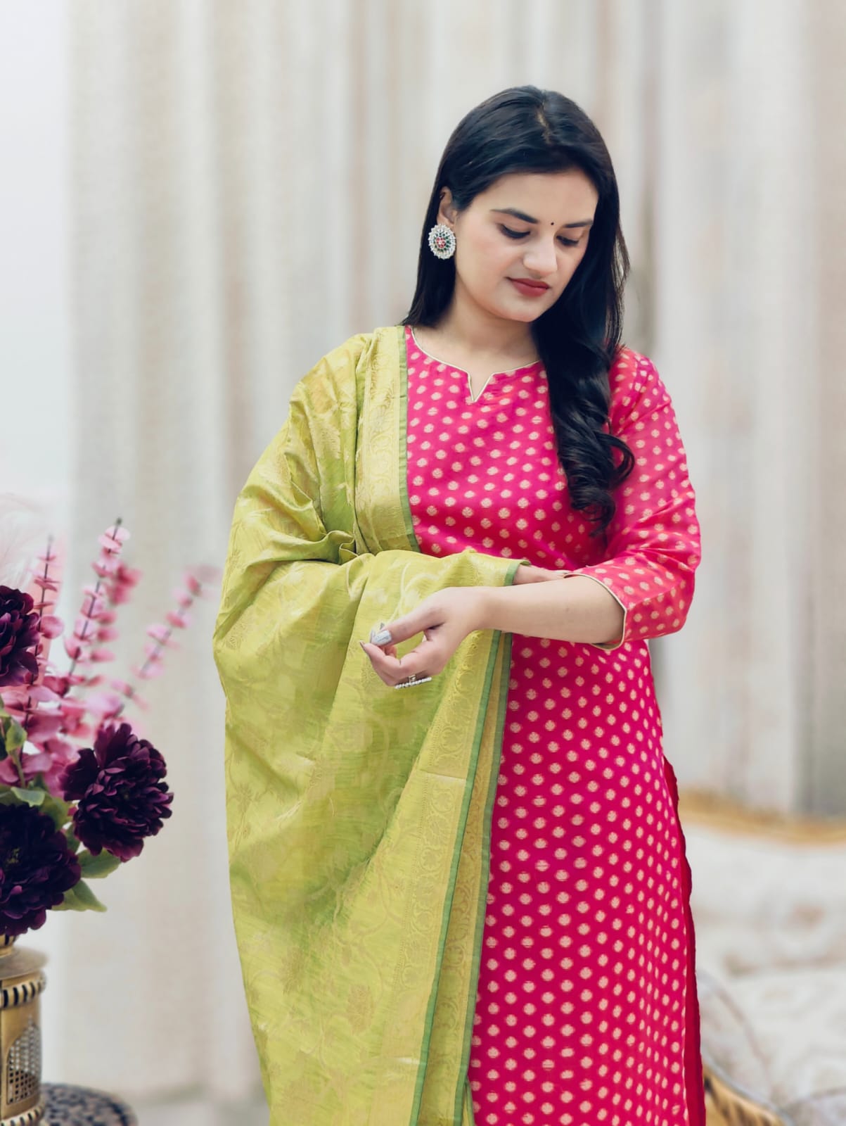 Elevate your ethnic wardrobe with this stunning Kurti Set, thoughtfully designed to bring together timeless tradition and contemporary style. Crafted from comfortable, breathable fabric, this ensemble ensures you feel as good as you look throughout the day.