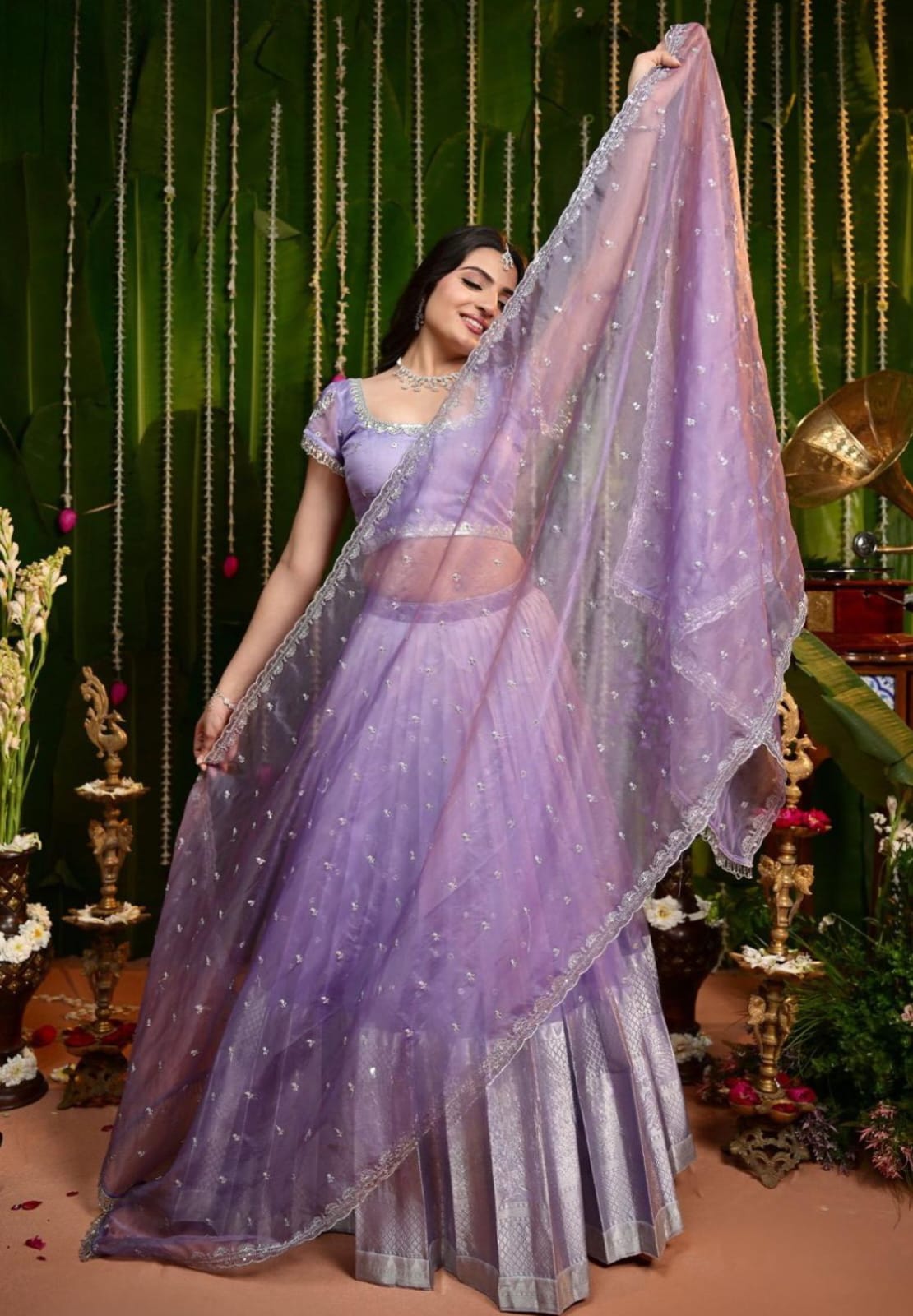 *Product Name* Gaurika Purple Organza Lehenga Set for Special Occasions