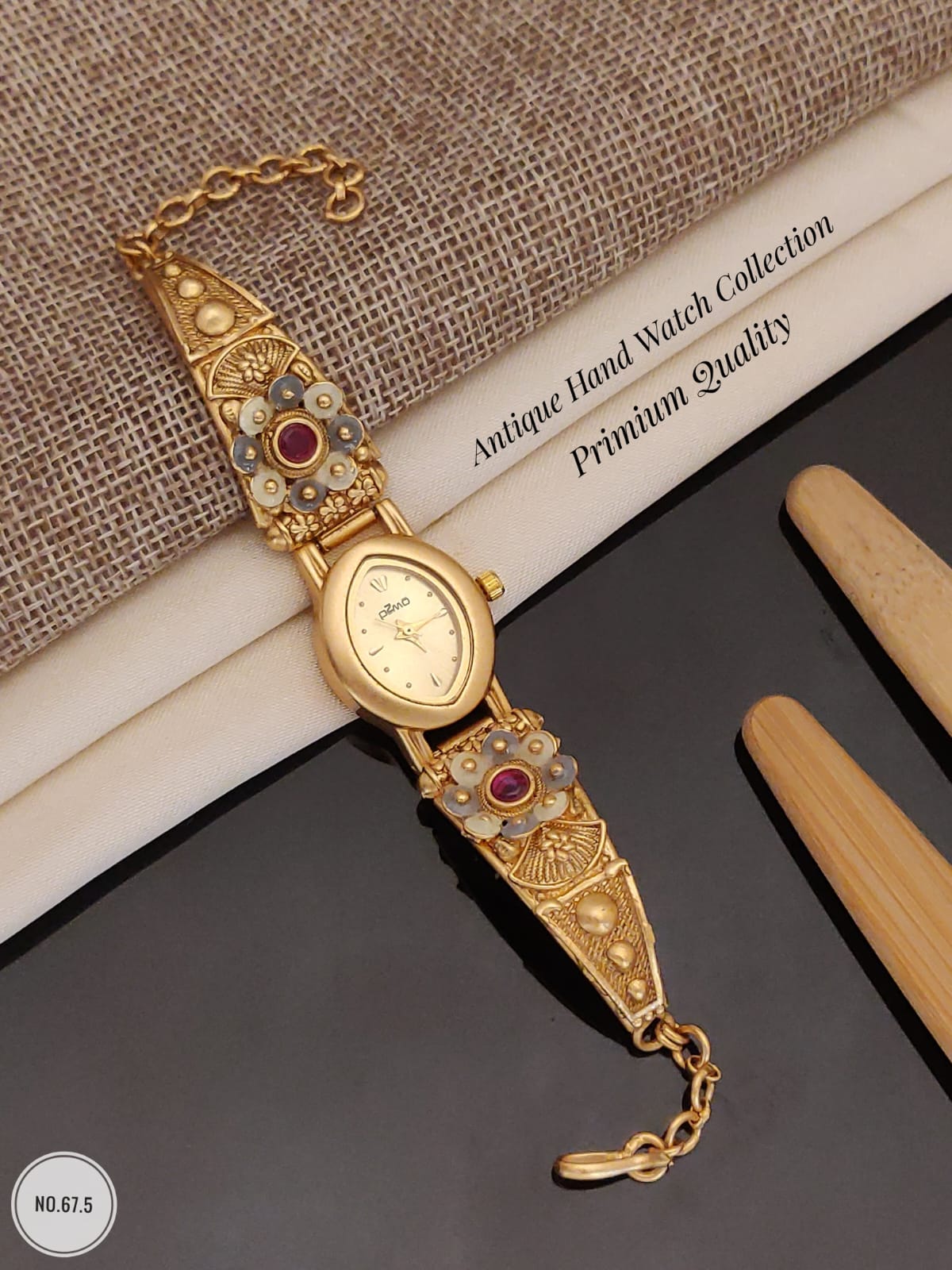 Elevate your festive and wedding look with this Antique Heritage Golden Watch, designed to reflect timeless tradition and royal elegance. Crafted with a rich gold finish and classic detailing, this watch adds a luxurious touch to ethnic and ceremonial outfits. Perfect for weddings, festivals, and special occasions, it embodies heritage charm with a refined, majestic presence.