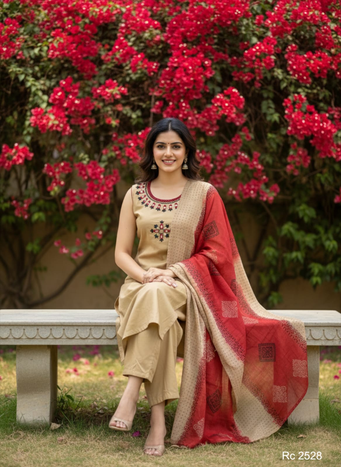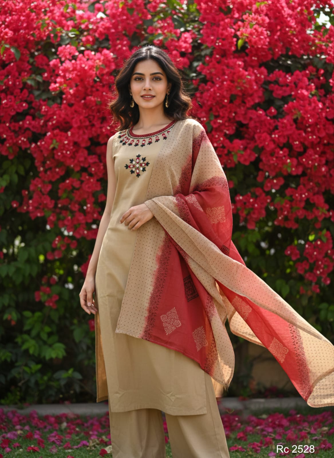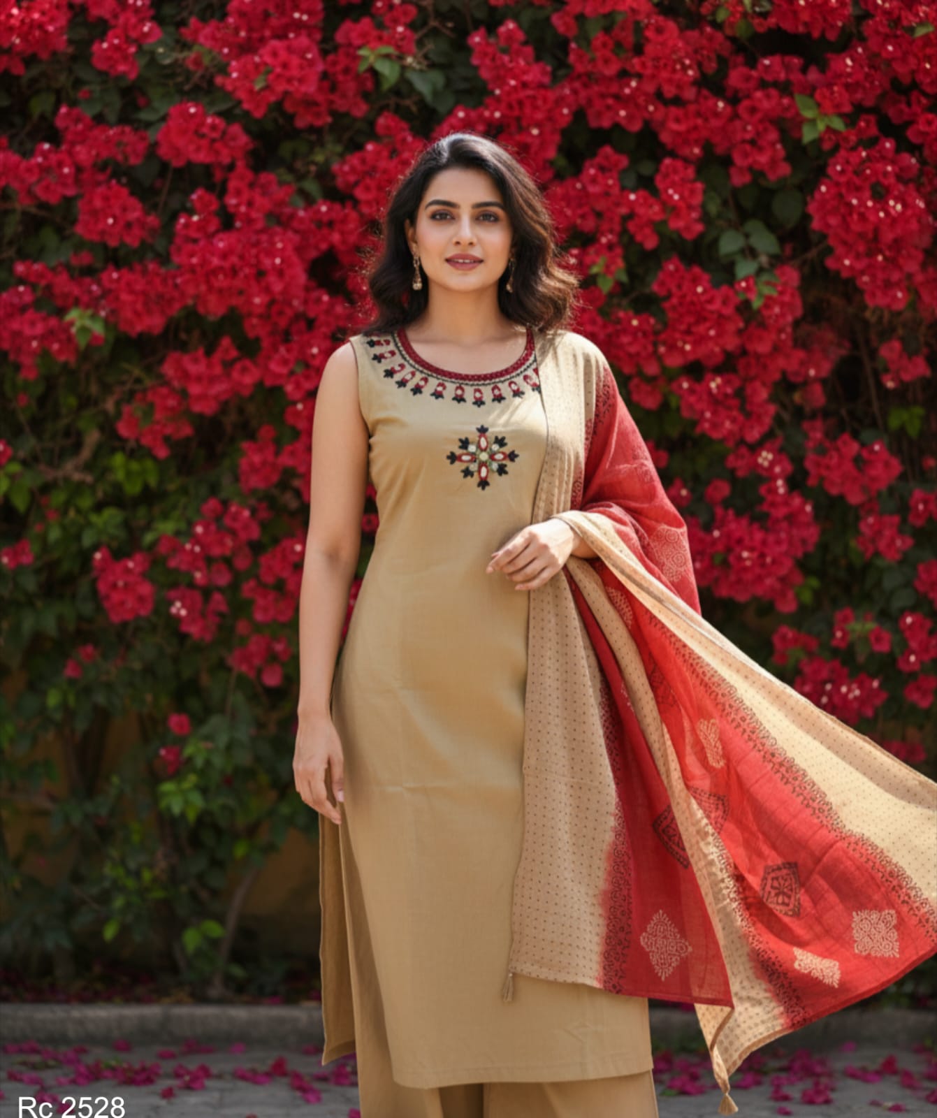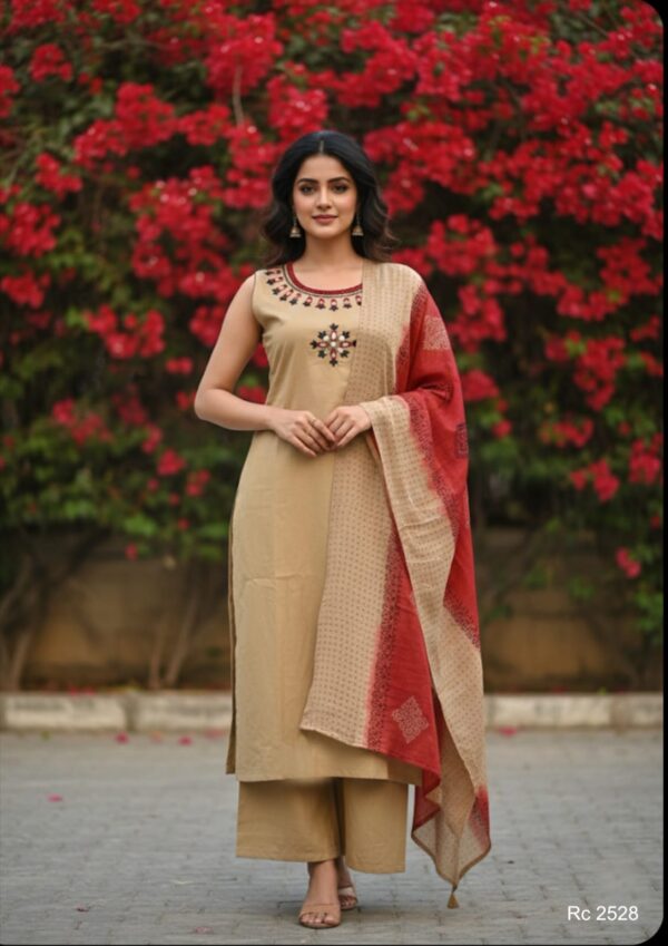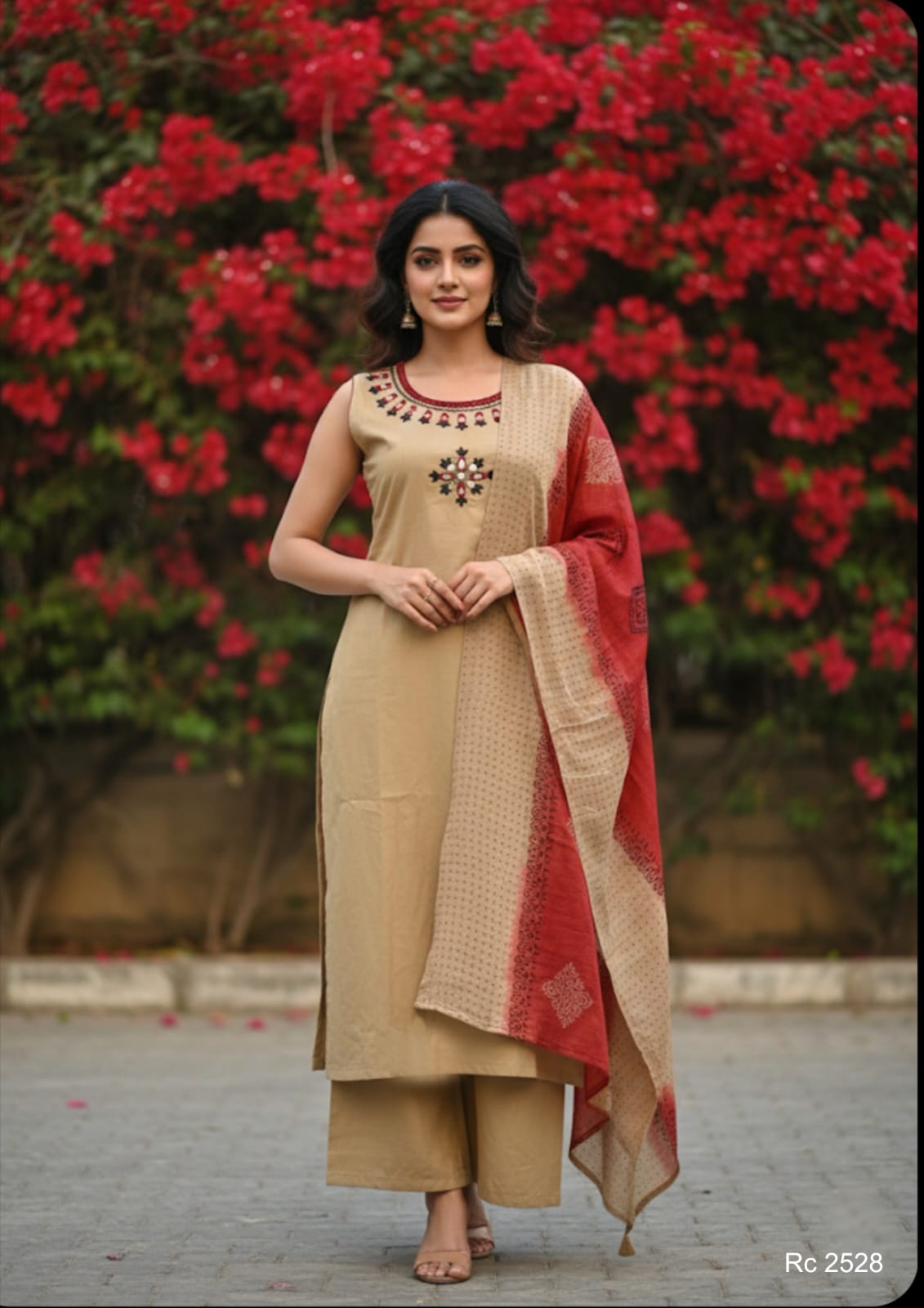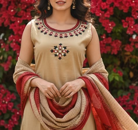Handloom Cotton kurta with beautiful katha mirror work & designer yoke with plazo