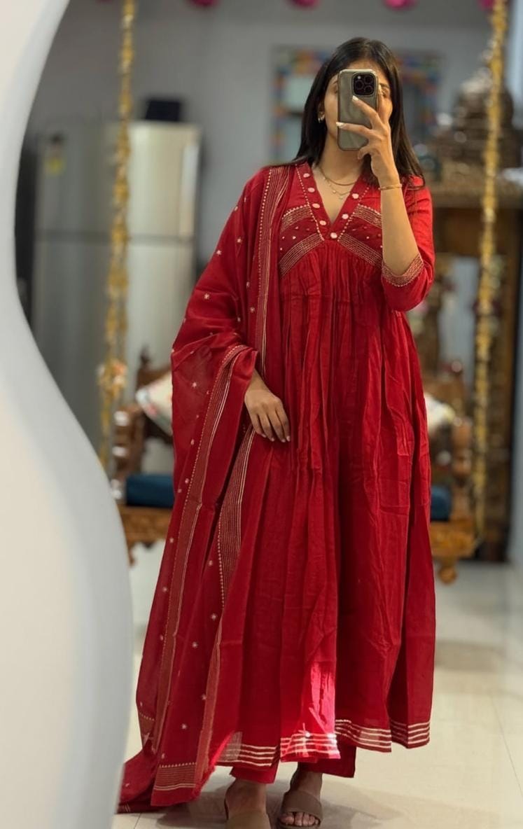 Beautiful mul cotton designer embroidered anarkali
