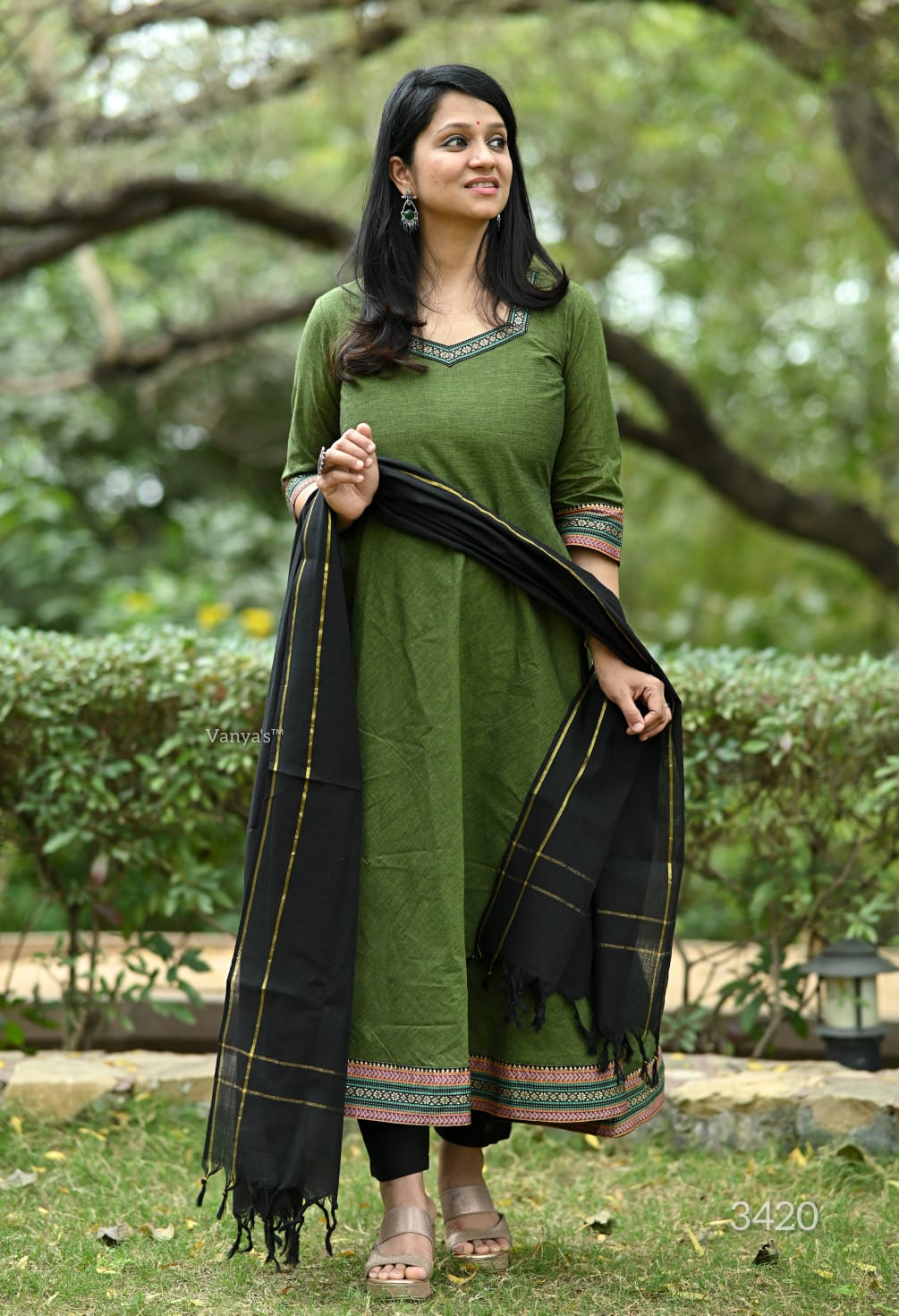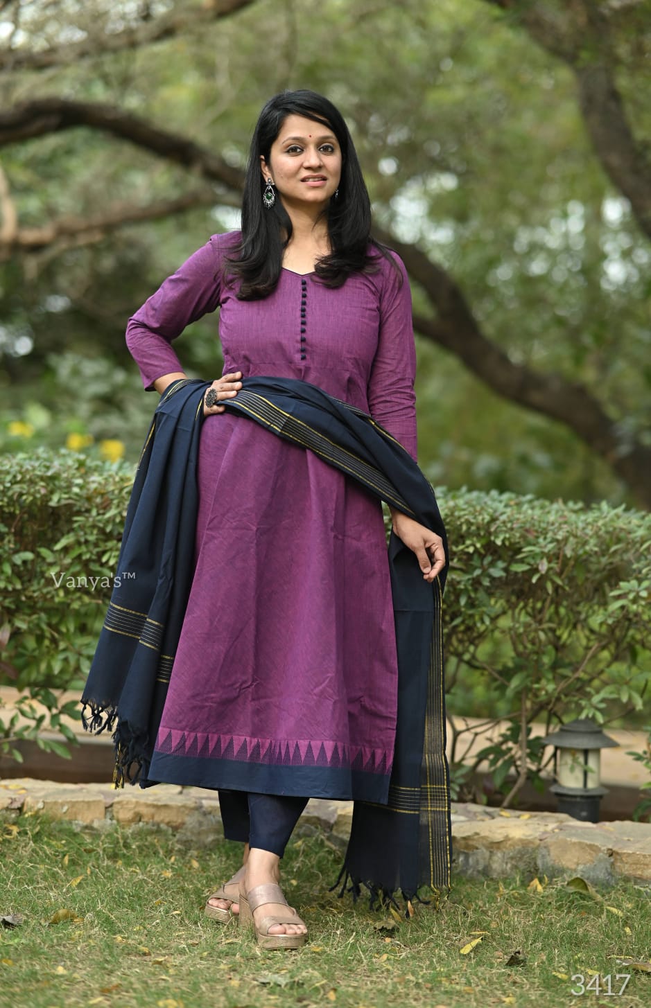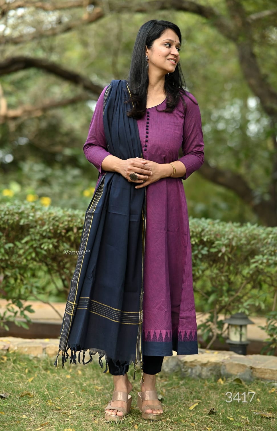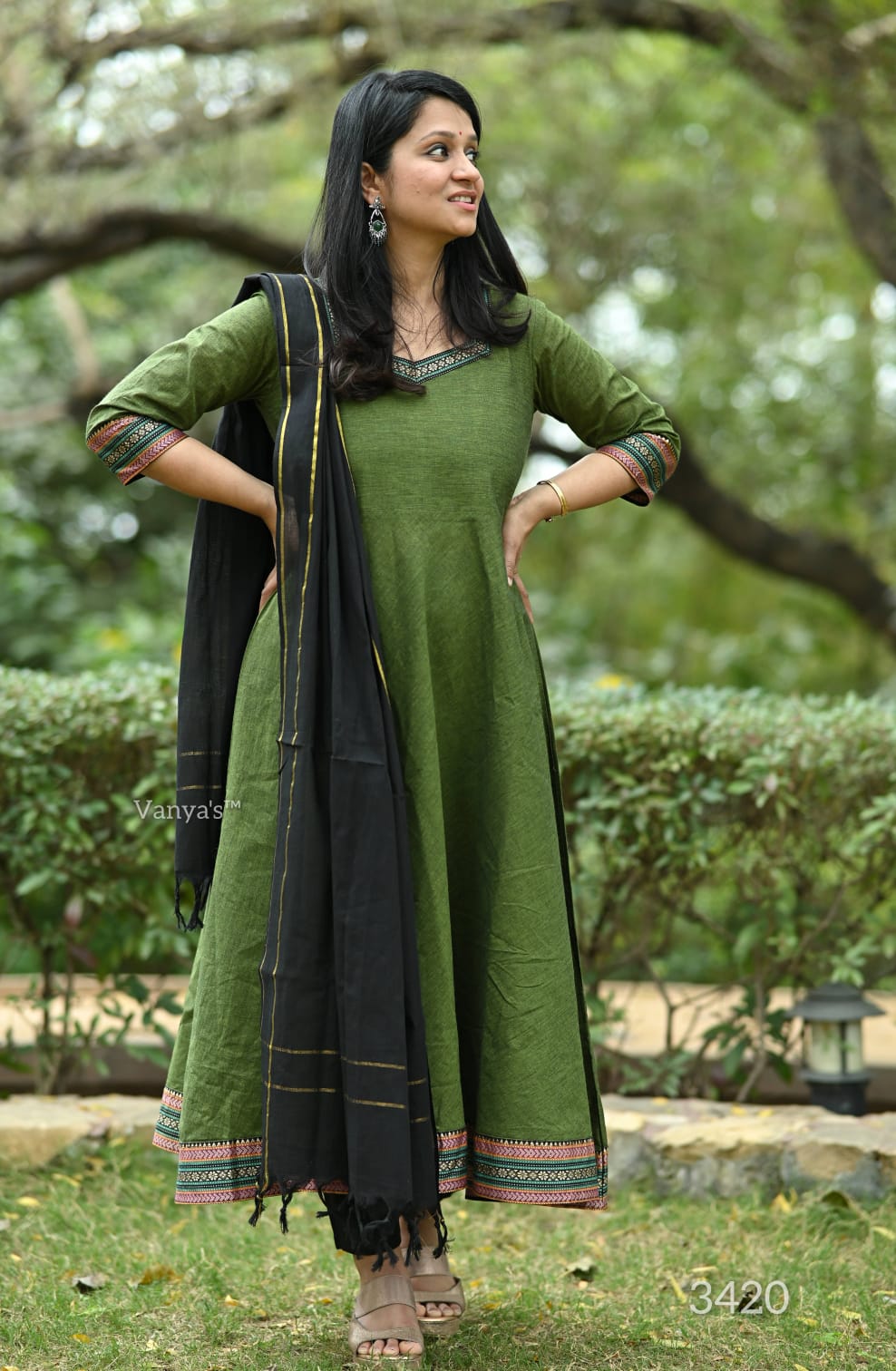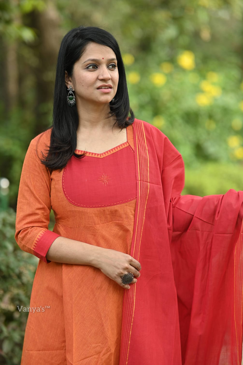 You will be so much in love with this south handloom manglagiri outfit for combinations of temple border self thread handloom butti south cotton anarkali kurta (with attached mul lining till choli) and south cotton pant paired with south cotton duppata self thread self weaving temple border, add a unique vibe.