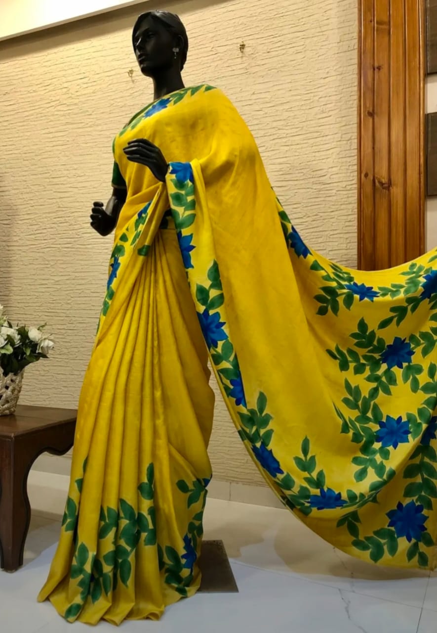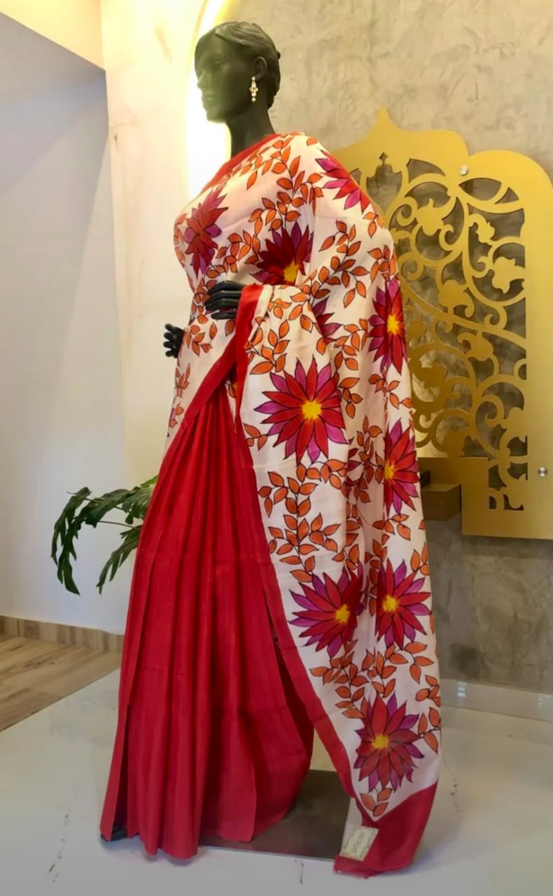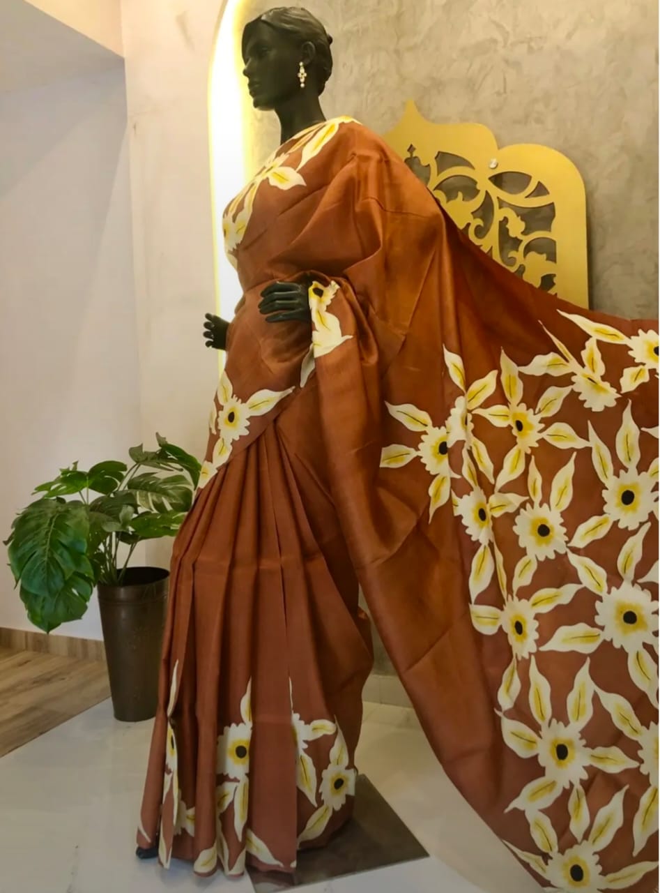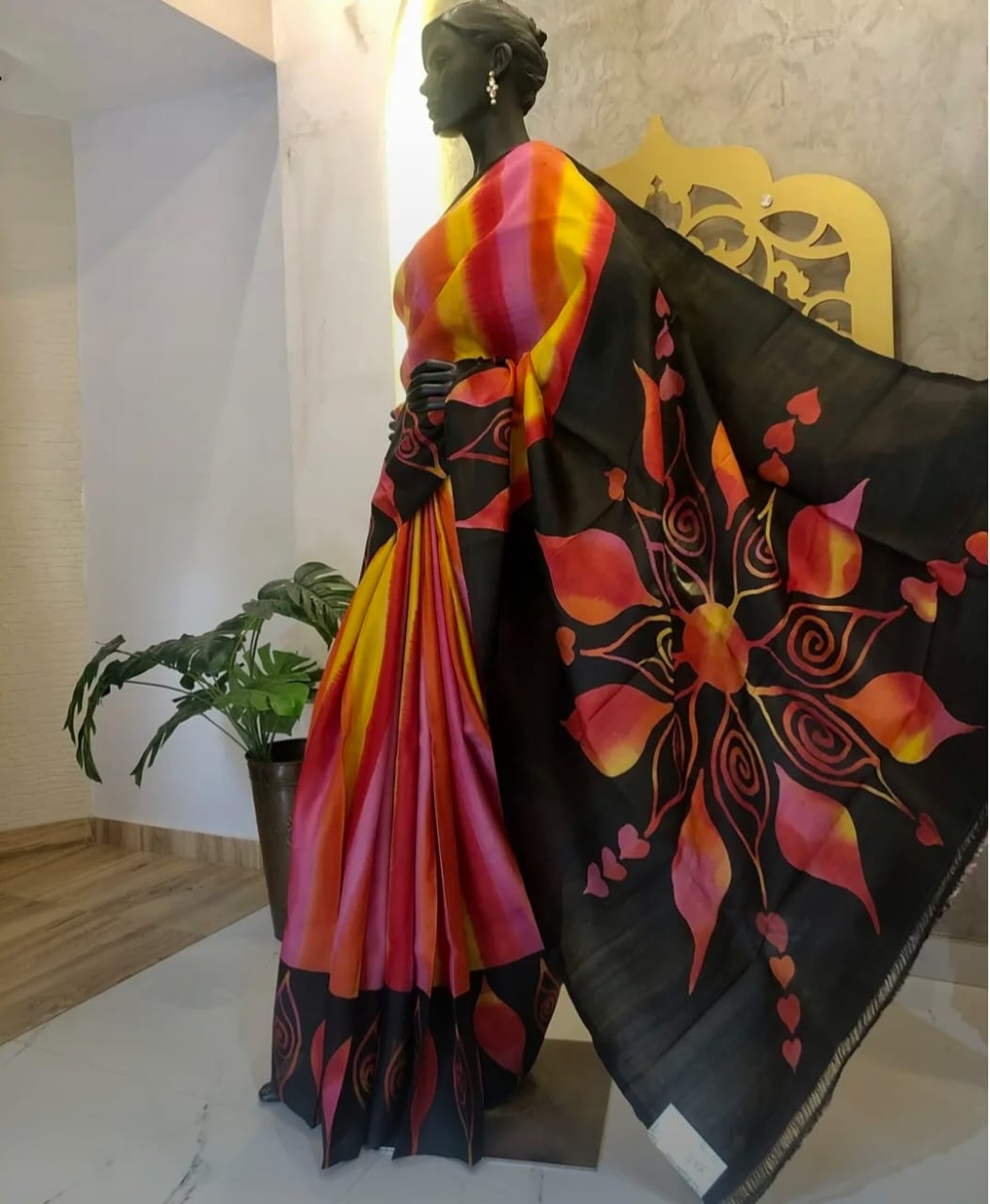 Exclusive bishnupuri Handllom pure silk hand painted saree