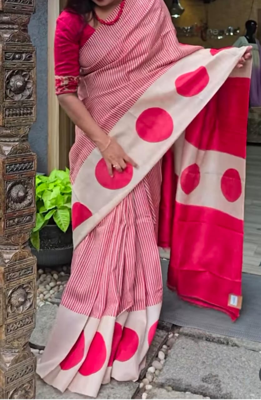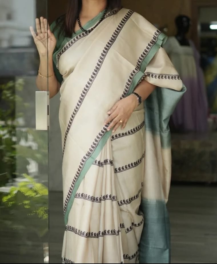 Exclusive hand Kodi printed on pure handloom tussar with unstitched blouse