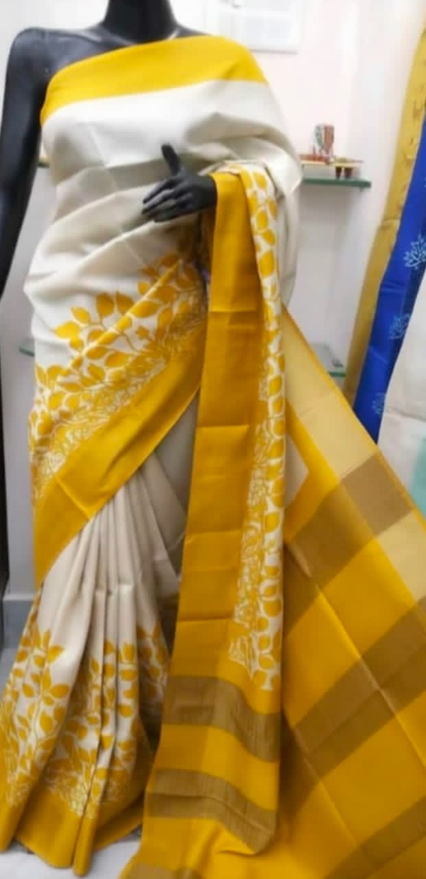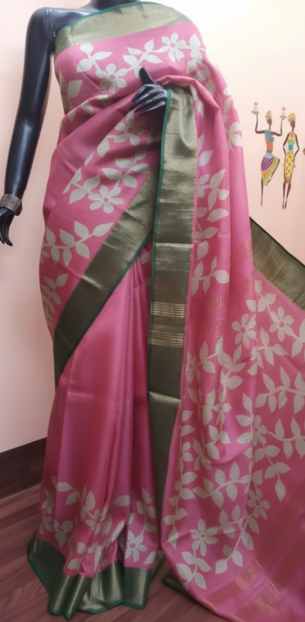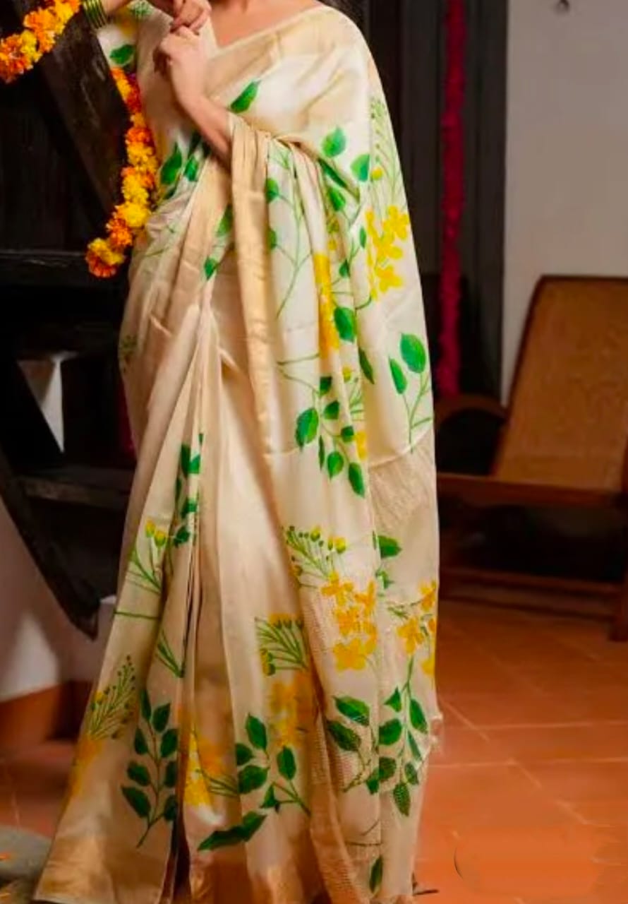 Exclusive hand-painted design on zari border pure handloom tussar saree