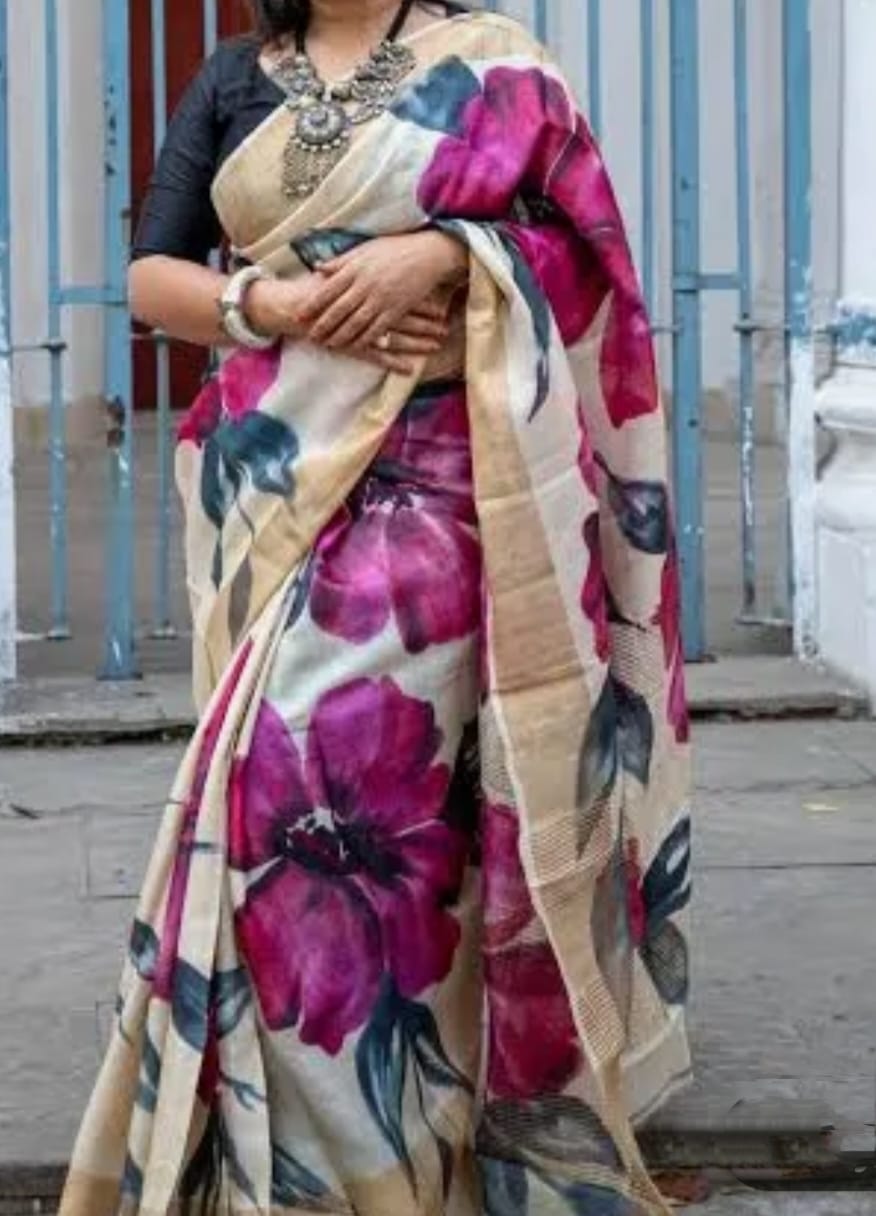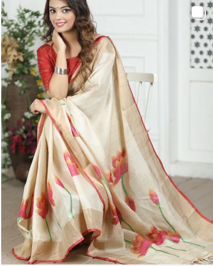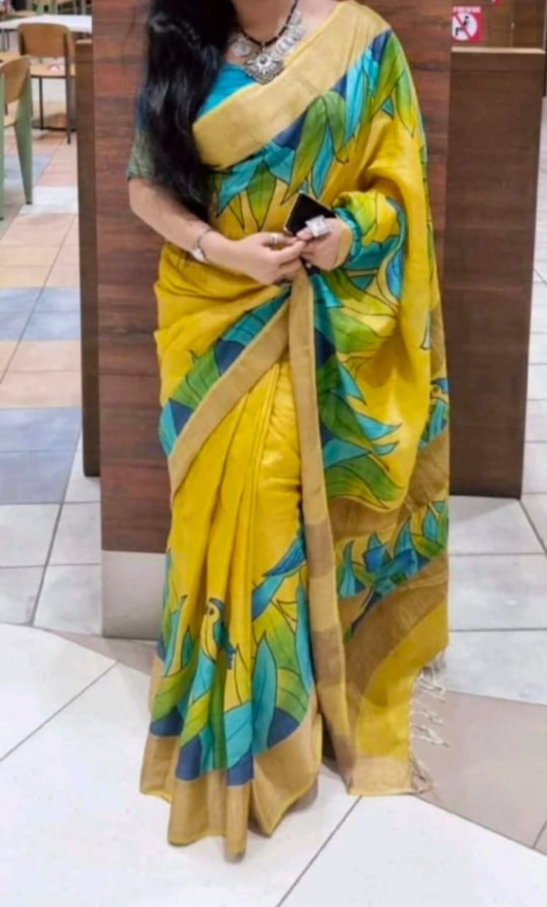Exclusive hand-painted tussar saree