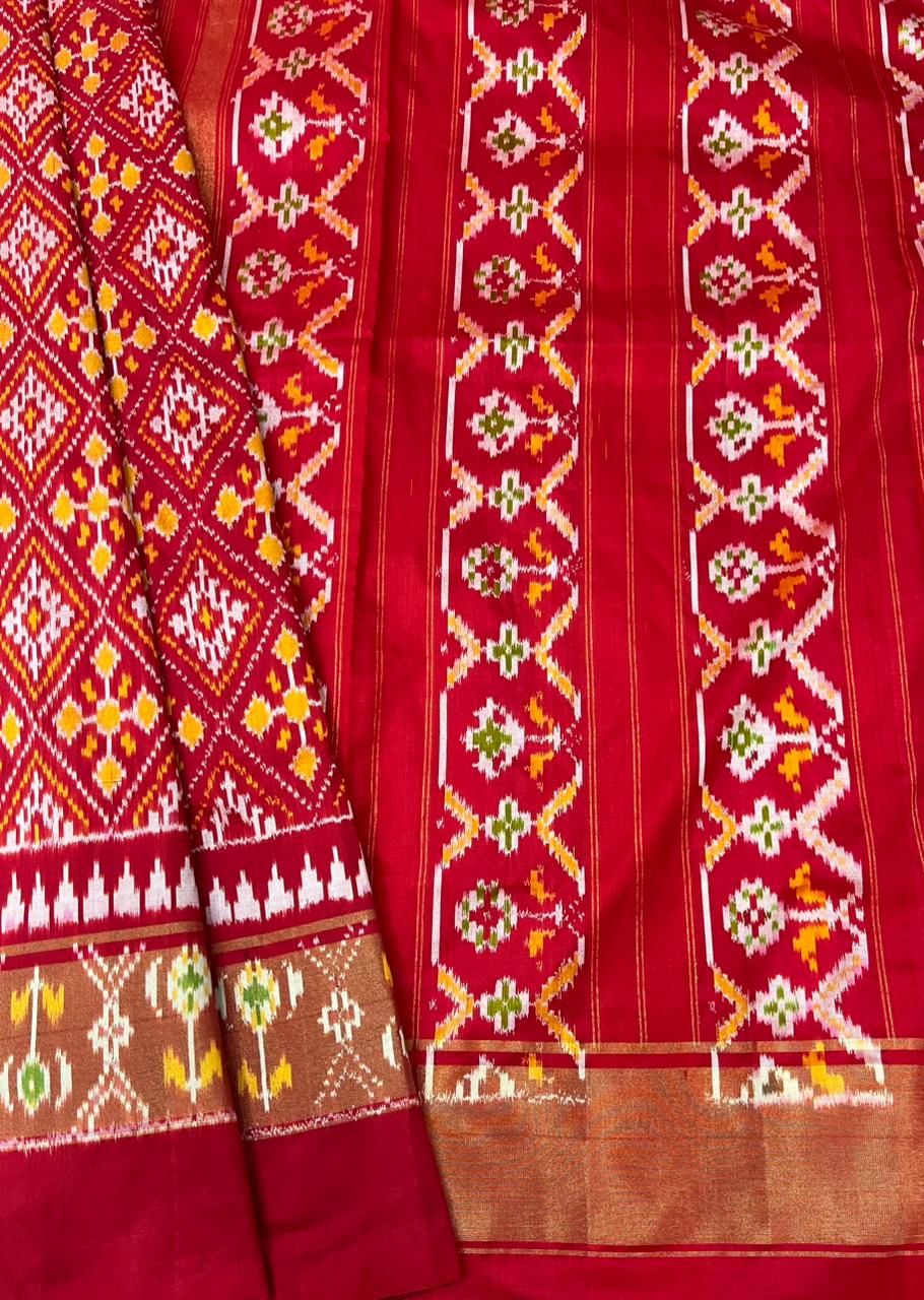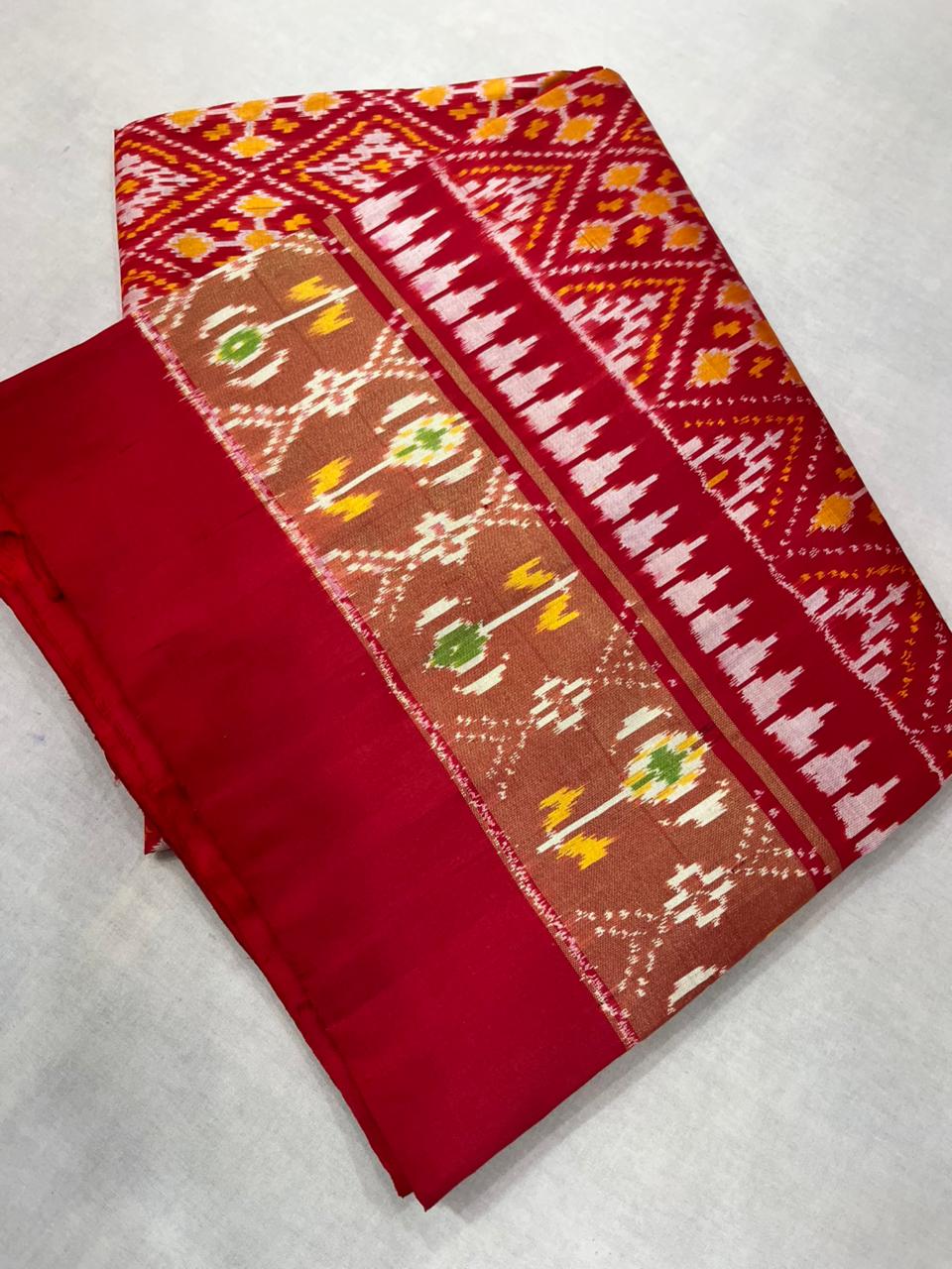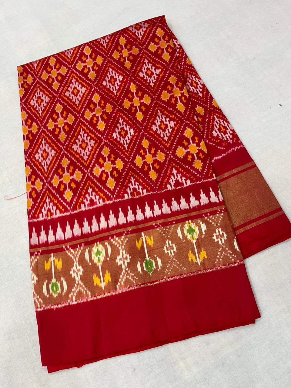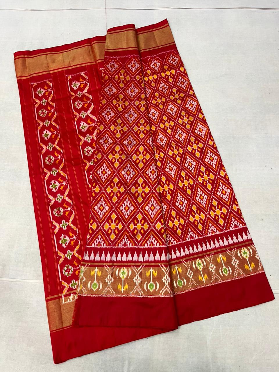 Each saree is carefully handwoven using premium-quality pure silk threads, offering a luxurious feel and graceful fall. The vibrant color combinations and symmetrical motifs make it a perfect choice for weddings, festive gatherings, and special occasions.