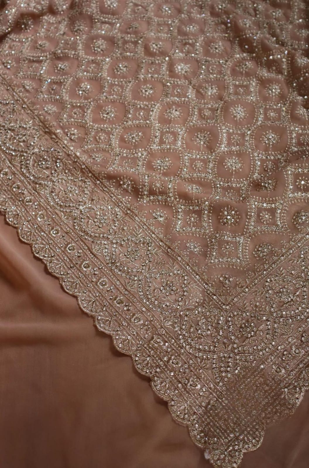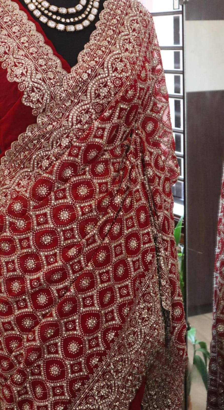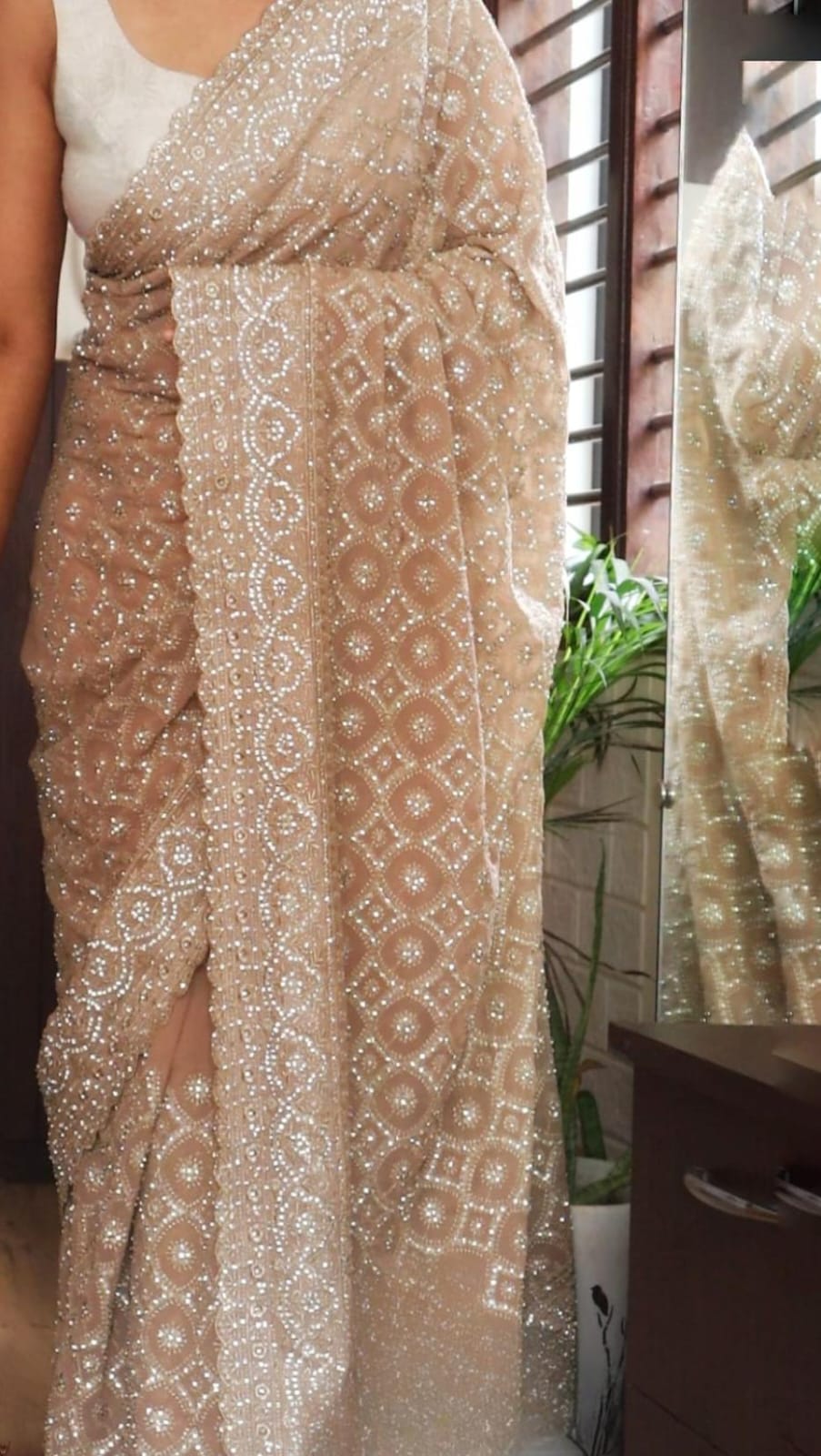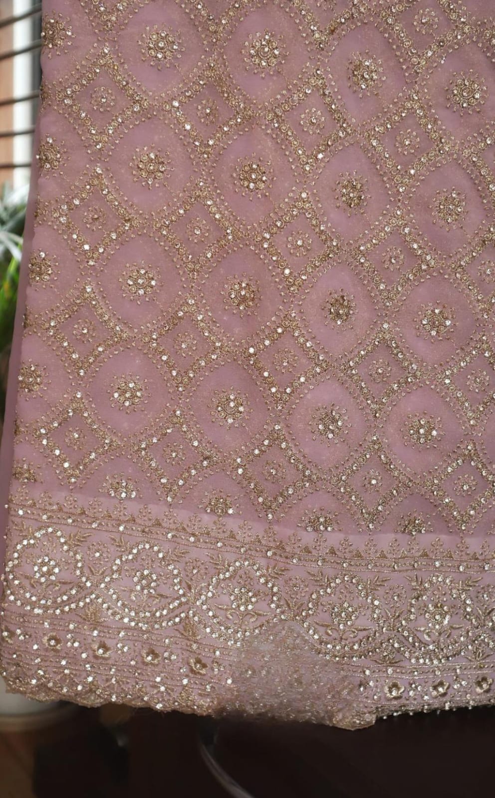 adorned with the intricate charm of Lucknowi Chikankari with stone embellishments*