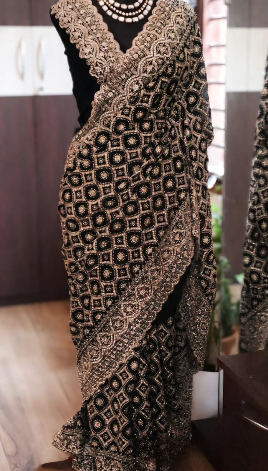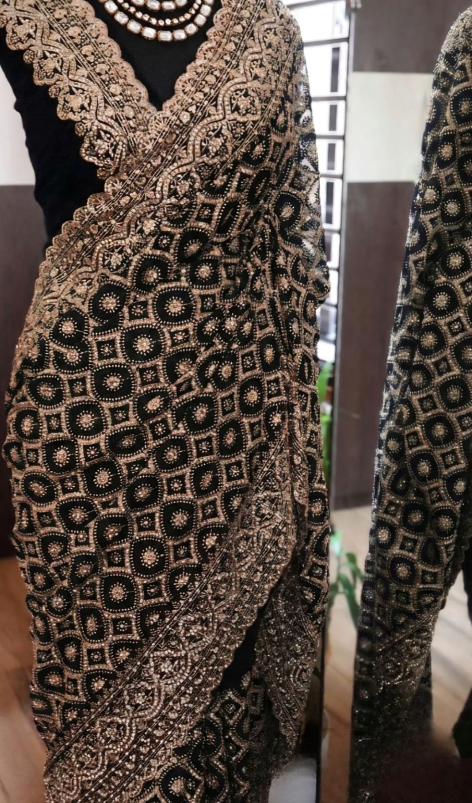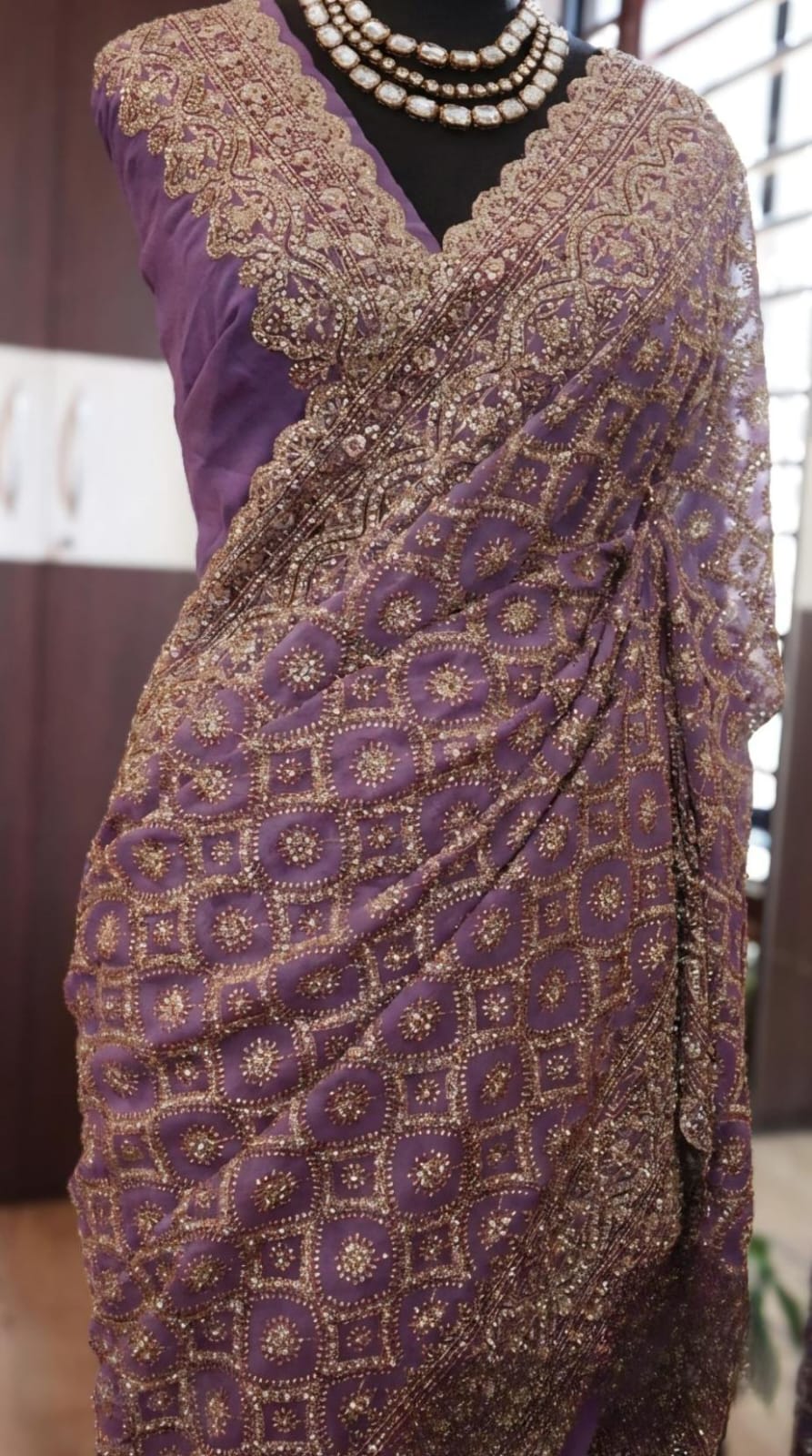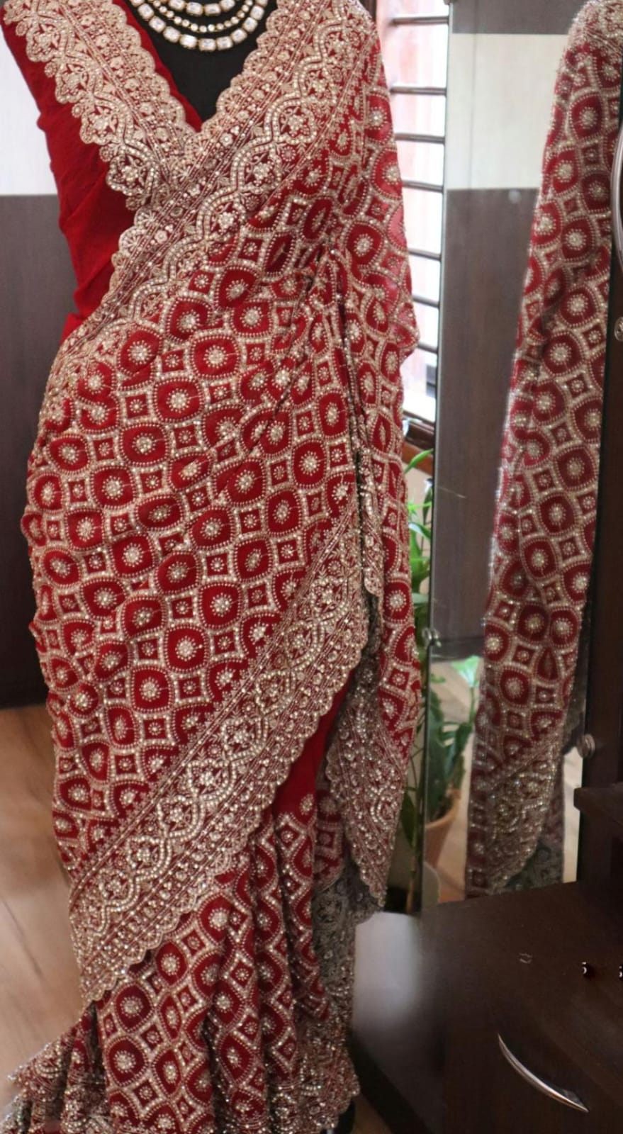 adorned with the intricate charm of Lucknowi Chikankari with stone embellishments*