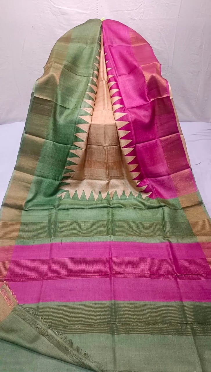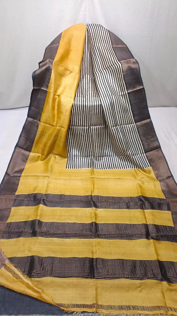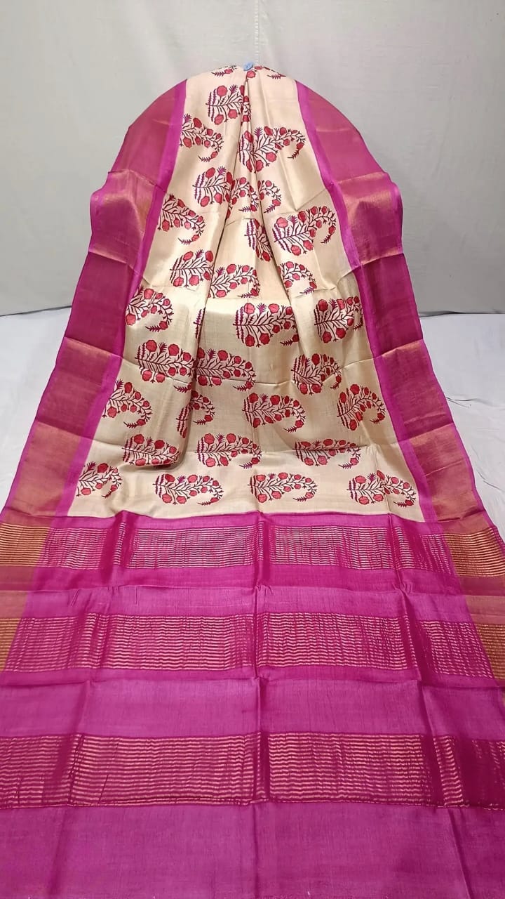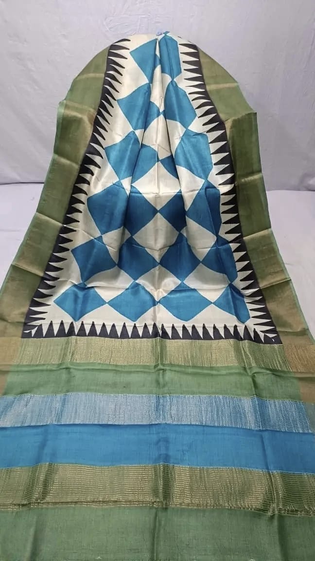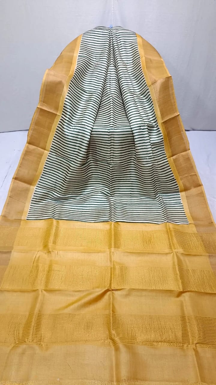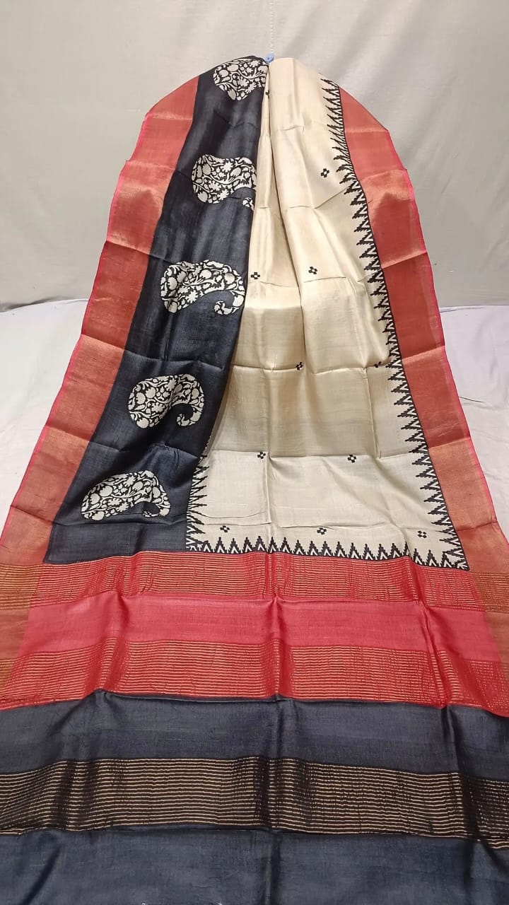 Exclusive hand-printing design on zari border pure handloom tussre saree