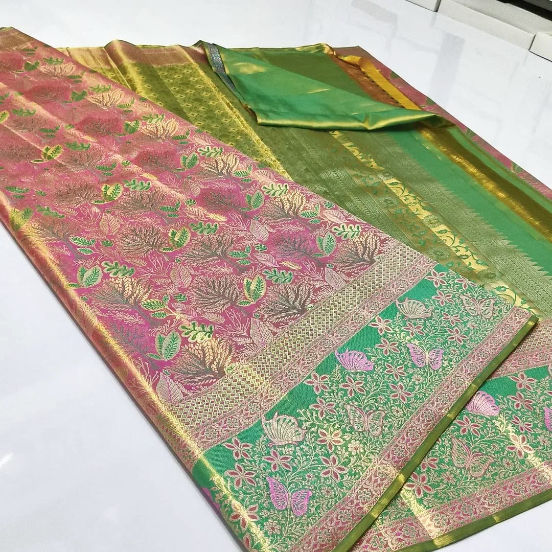 Exclusive wedding collection pure kanchipattu resham warp edge to edge Meenakari patterns