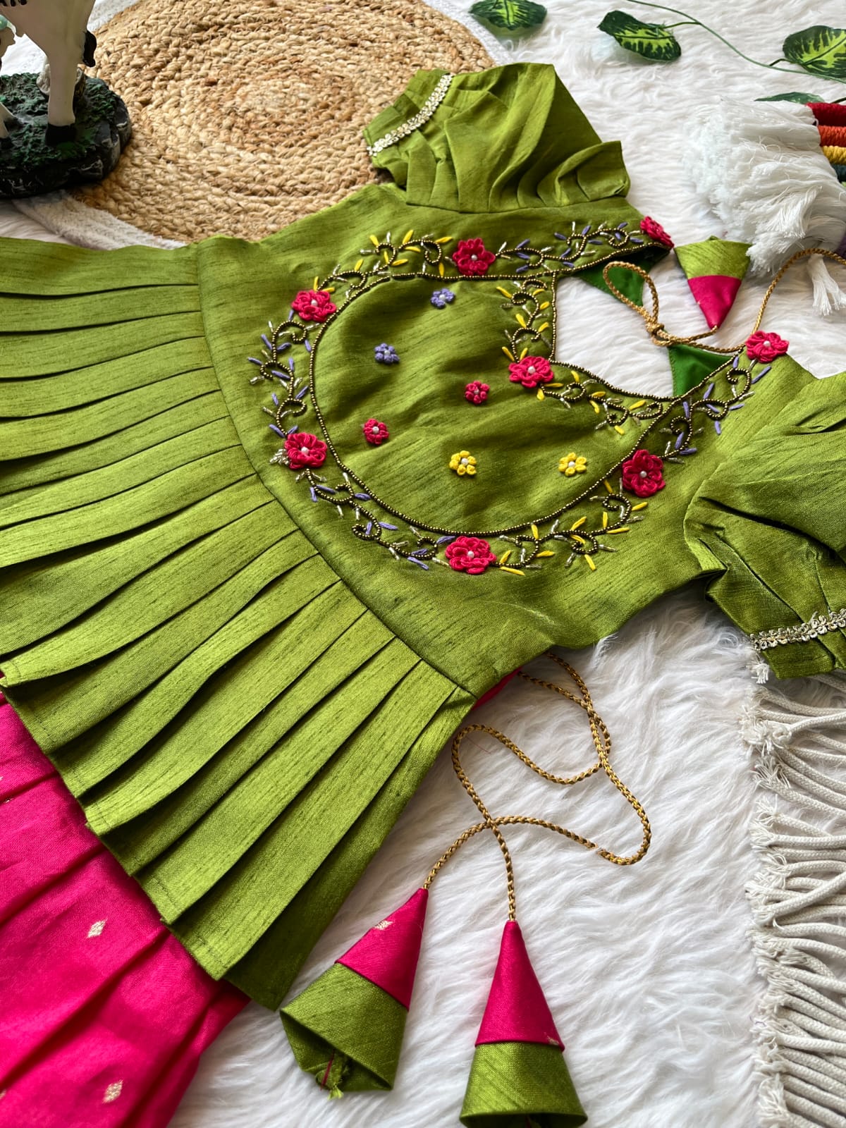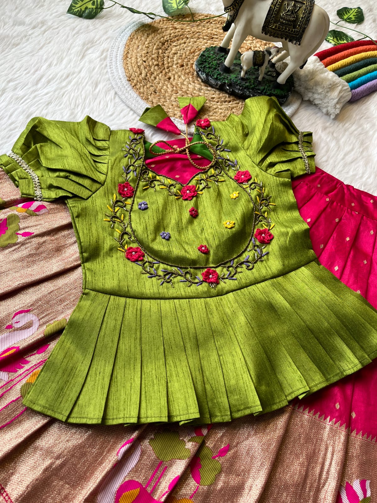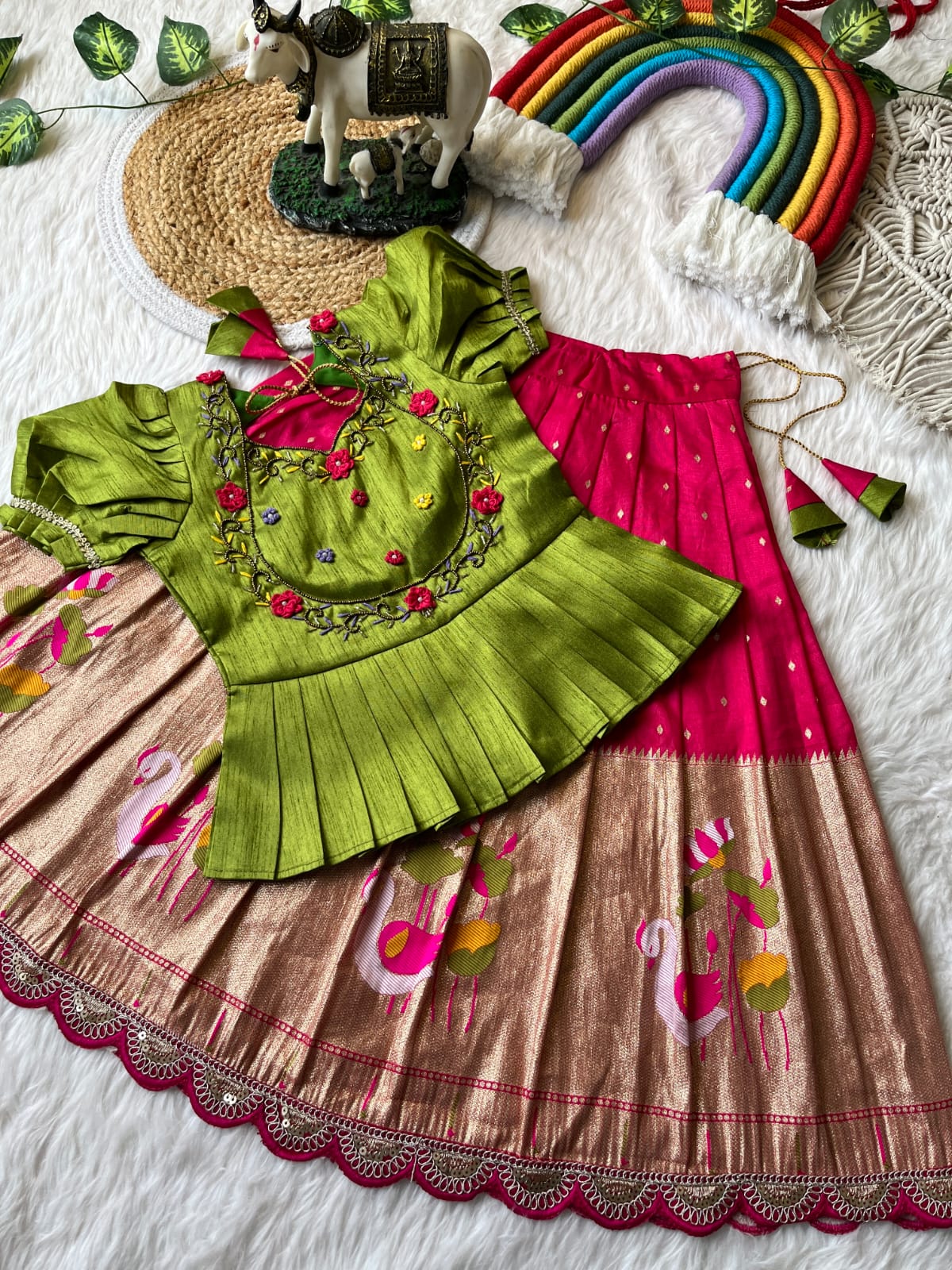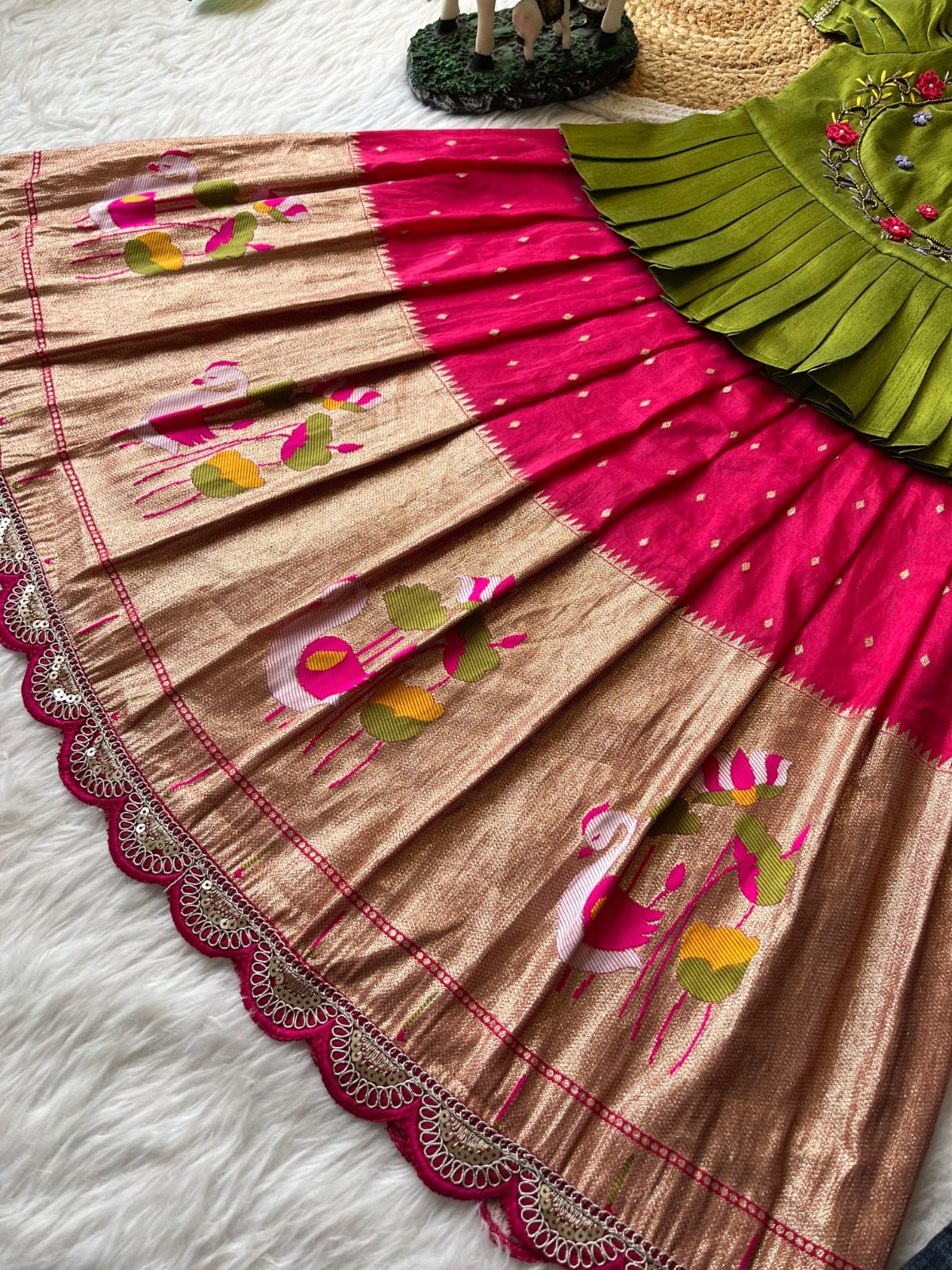 Skrit fabric :- Soft Dola silk with Paithani weaving flamingo