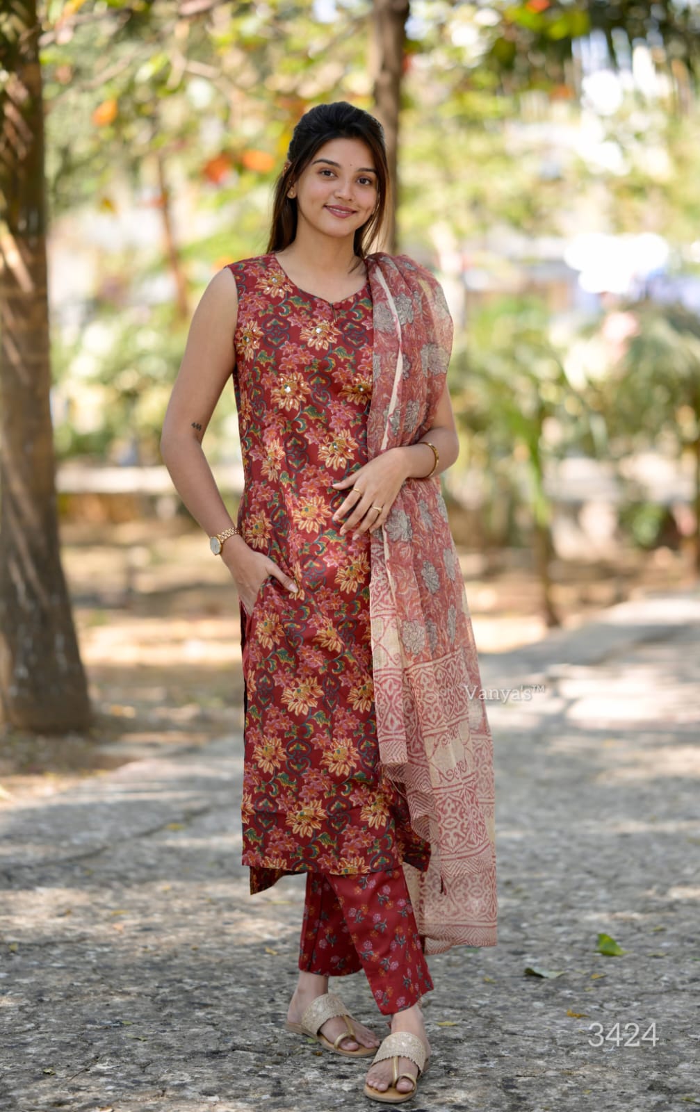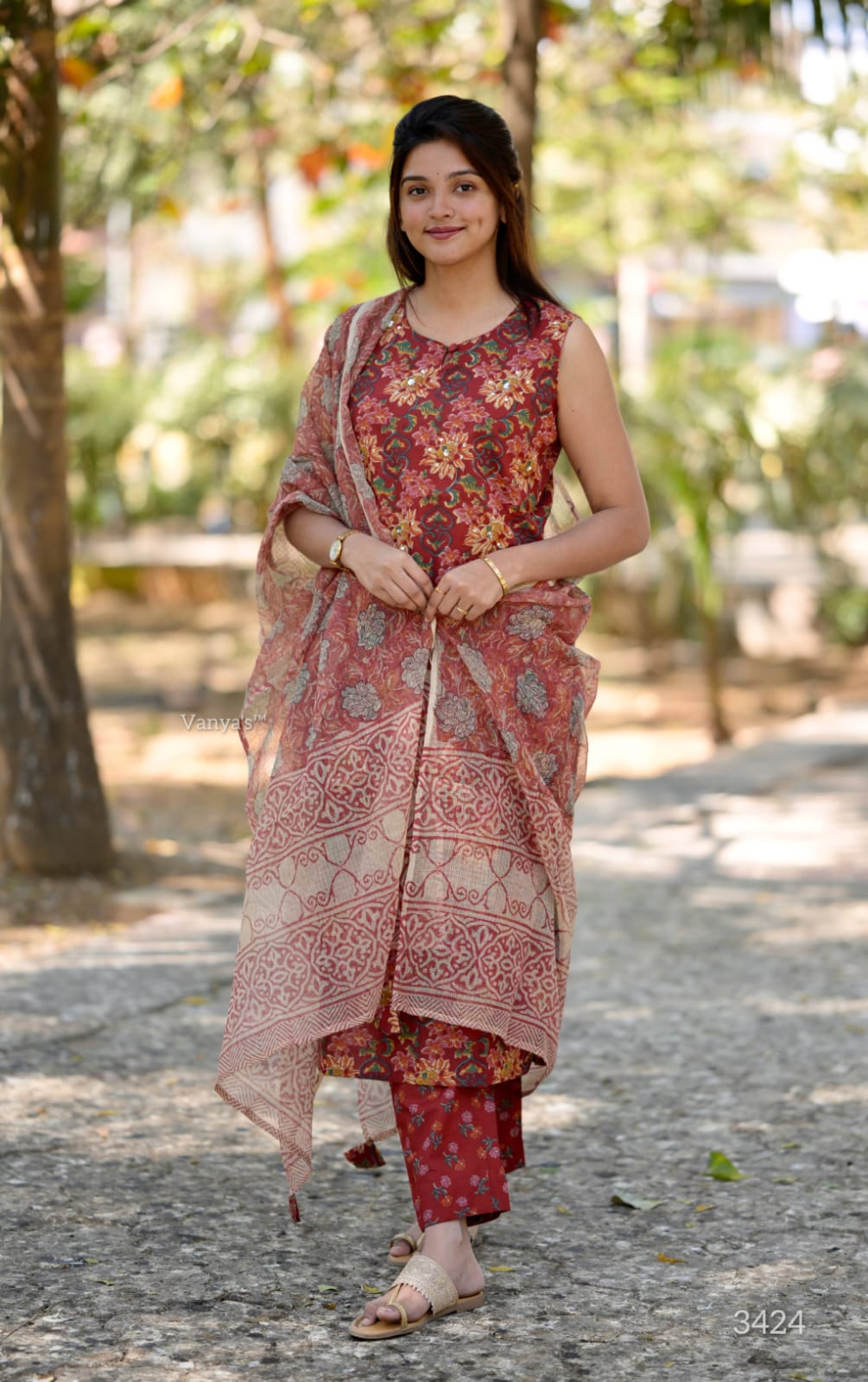 Hand block printed suit sets Hand block premium quality kota Doria duppata