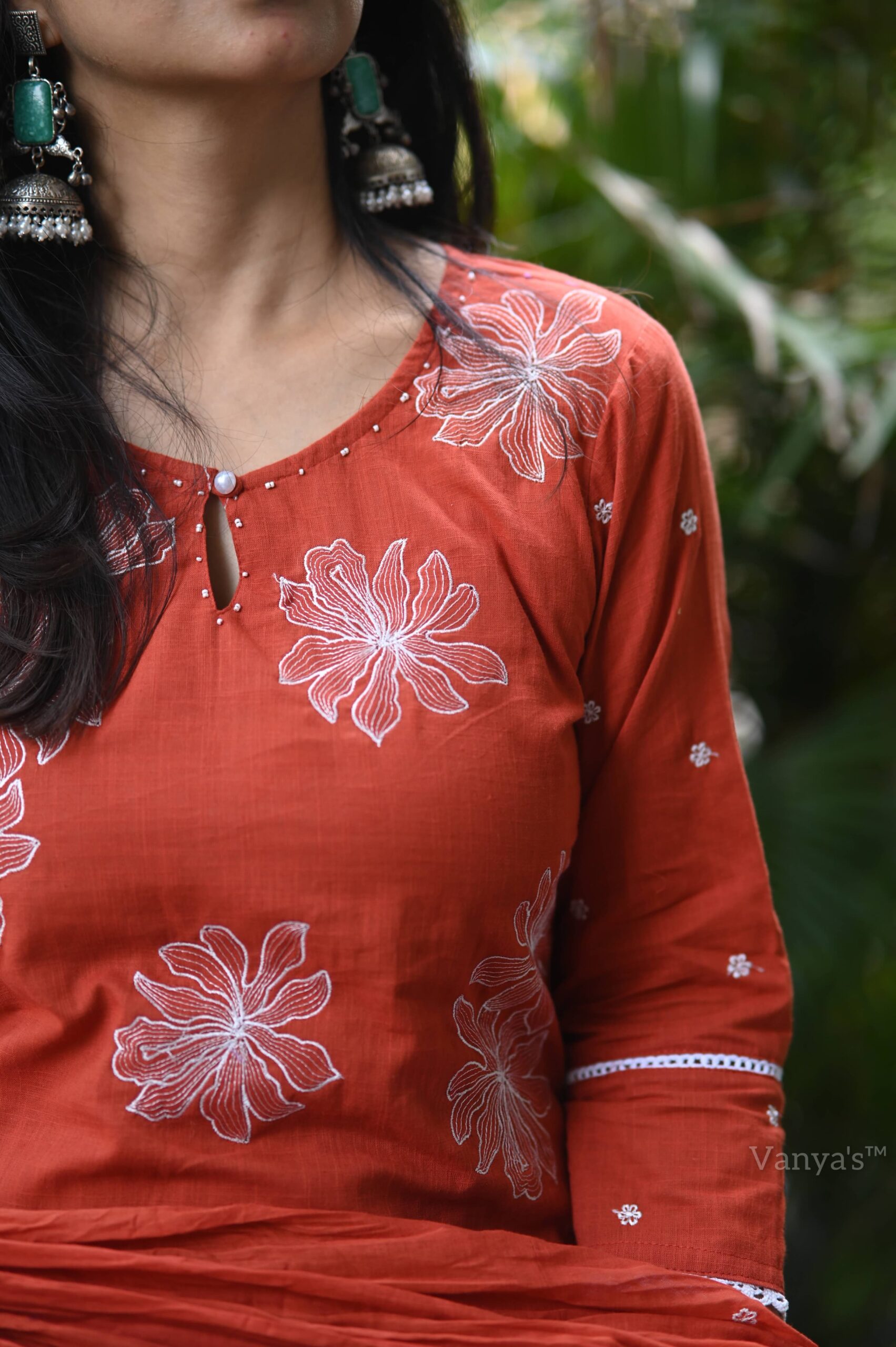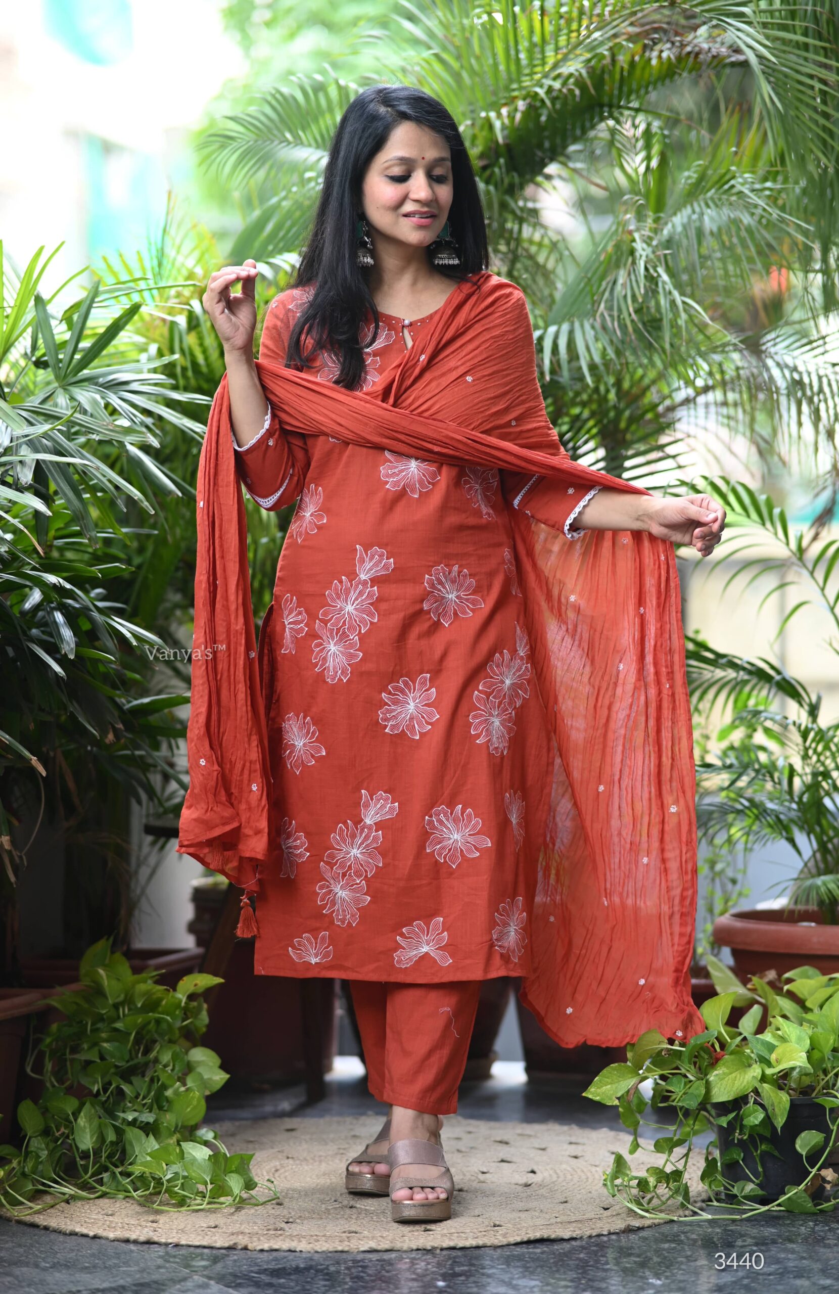 Fabric pure cotton handloom all over beautiful embroidery suit Paired with same cotton pant and mul crush full size duppata with all over embroidery 🪡