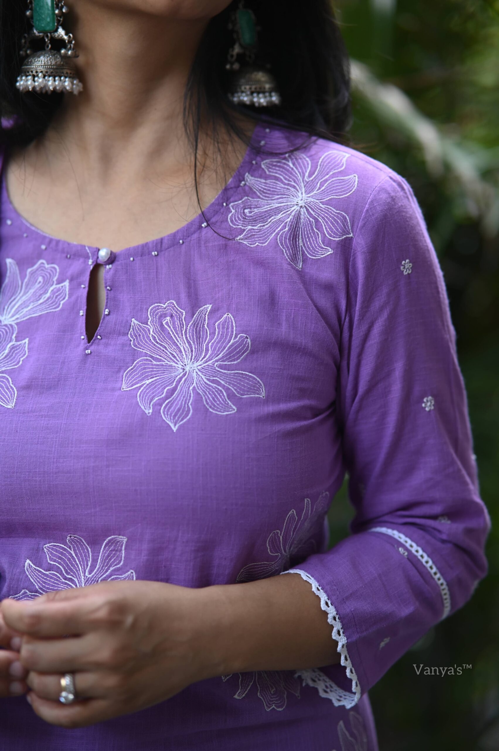 *Embroidery works with a hand machine and cut dana katha hand work on the neck, pearl button*
