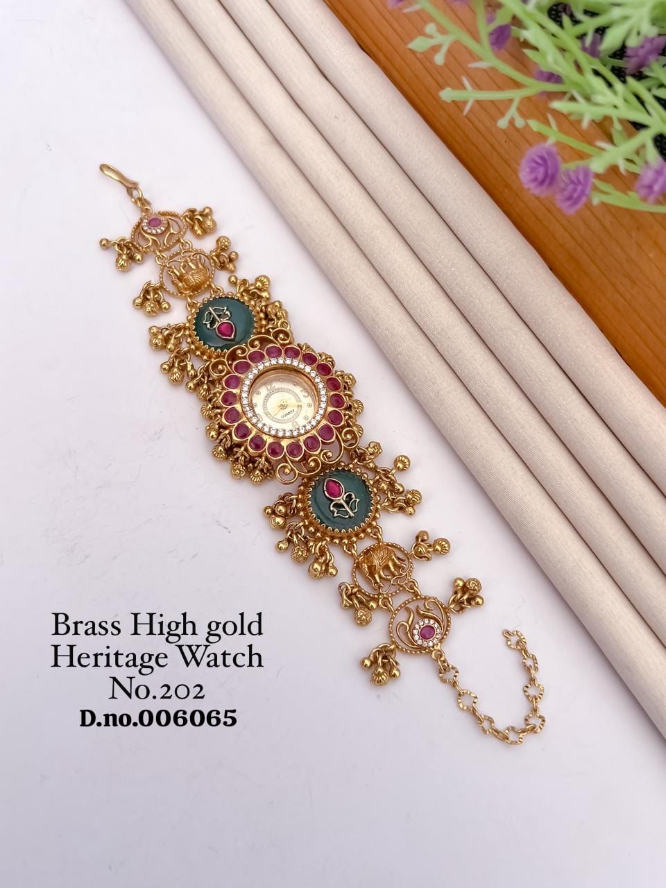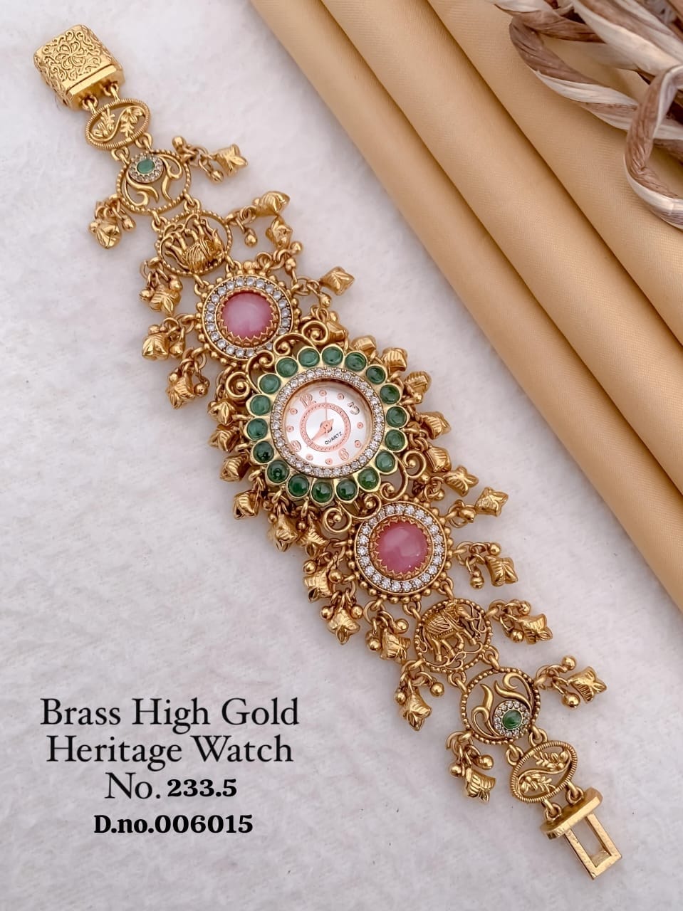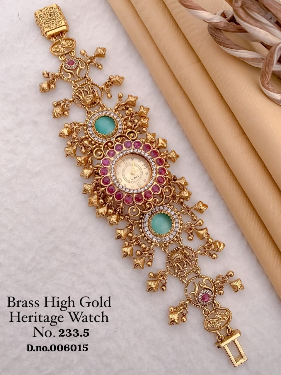 Elevate your festive and wedding look with this Antique Heritage Golden Watch, designed to reflect timeless tradition and royal elegance. Crafted with a rich gold finish and classic detailing, this watch adds a luxurious touch to ethnic and ceremonial outfits. Perfect for weddings, festivals, and special occasions, it embodies heritage charm with a refined, majestic presence.