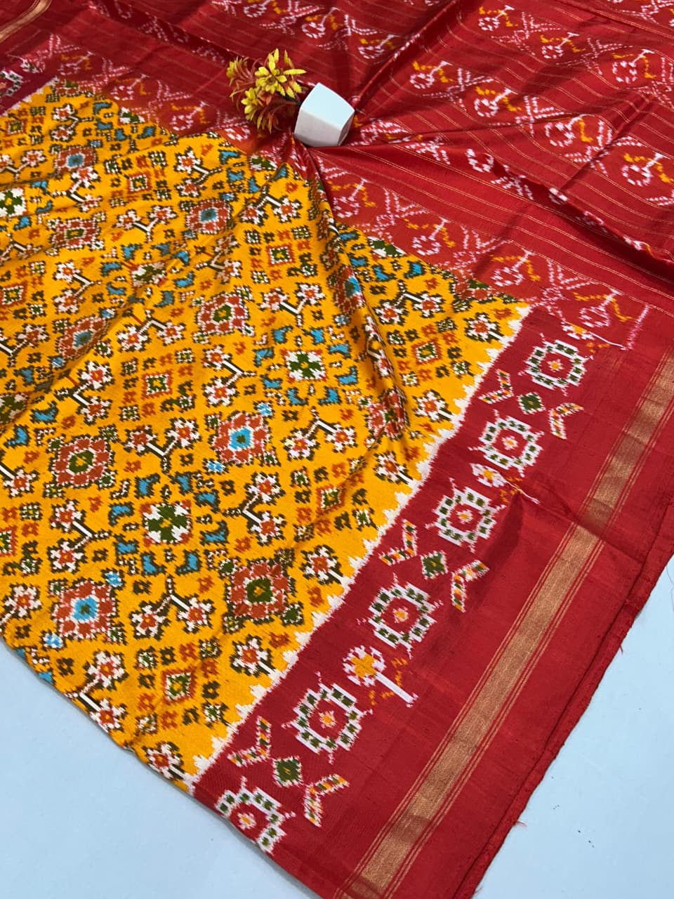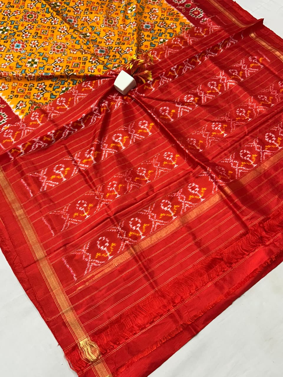 Each saree is carefully handwoven using premium-quality pure silk threads, offering a luxurious feel and graceful fall. The vibrant color combinations and symmetrical motifs make it a perfect choice for weddings, festive gatherings, and special occasions.