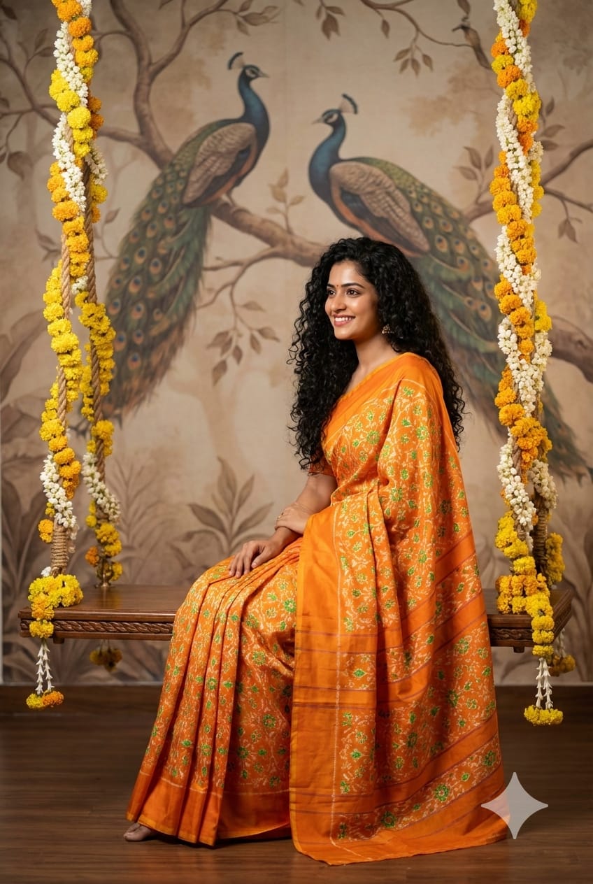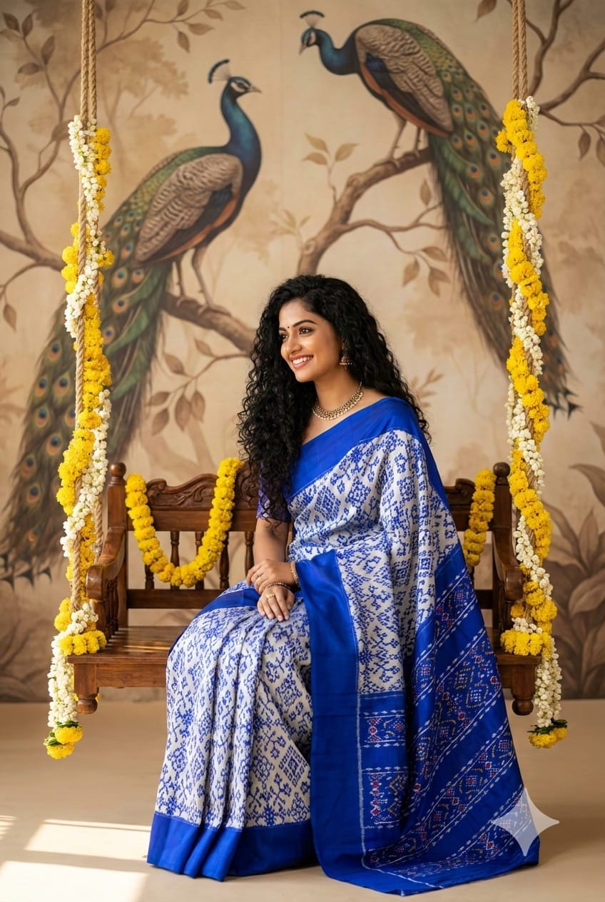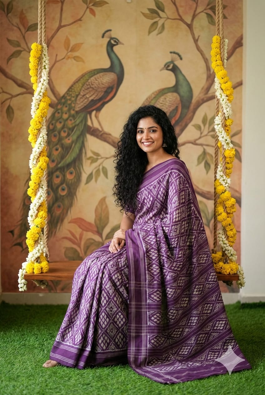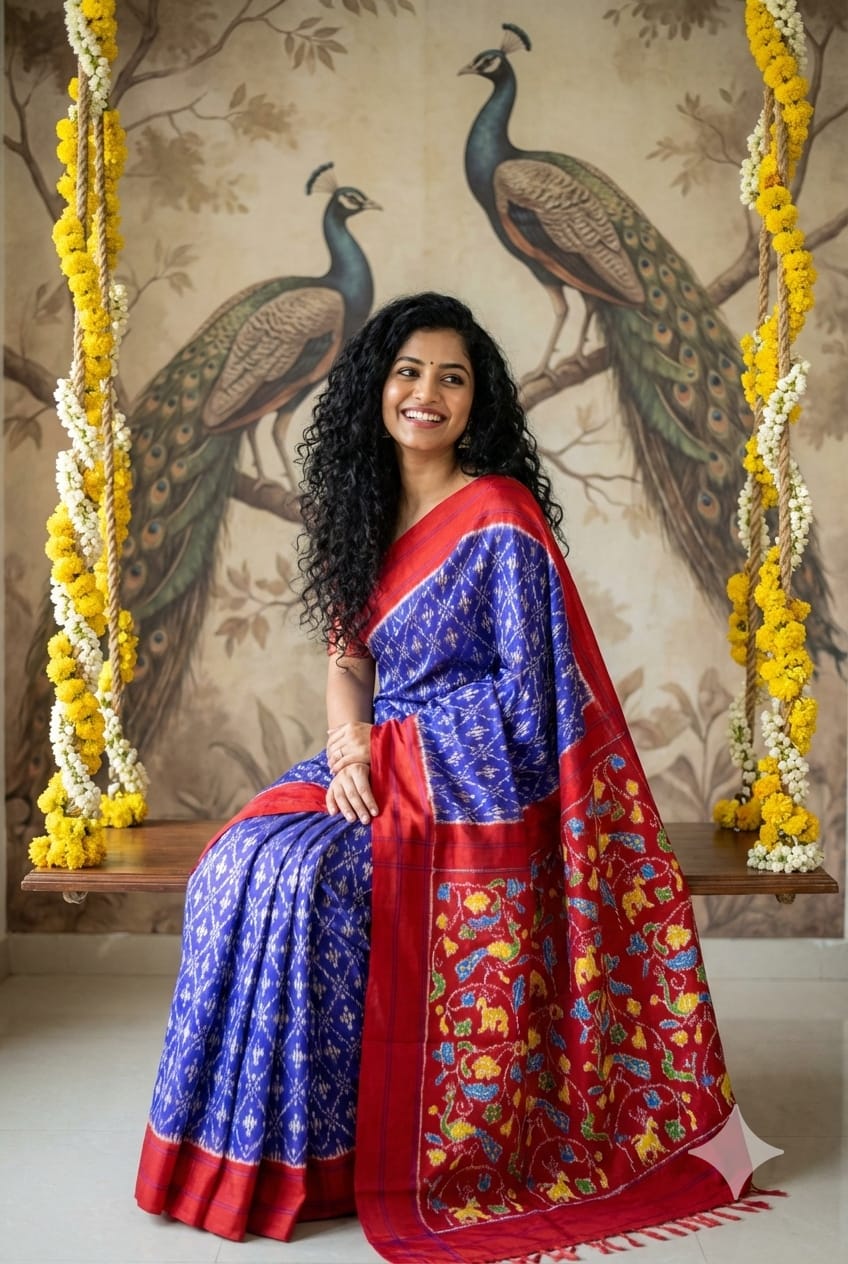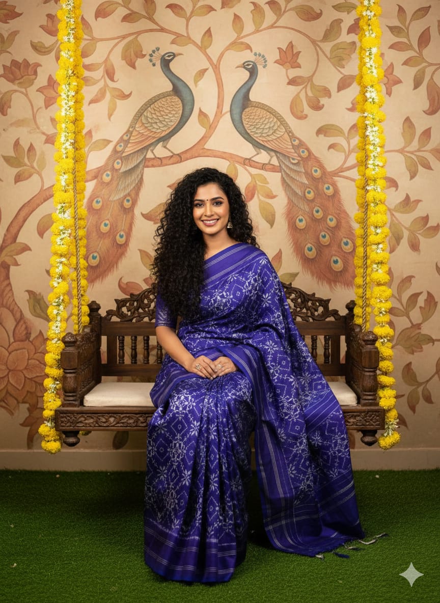 The Pochampally Pure Silk Saree is a symbol of South Indian weaving excellence. Originating from Bhoodan Pochampally, these sarees are famous for their intricate Ikat dyeing technique, where the yarns are tie-dyed before weaving to create stunning geometric and traditional patterns.