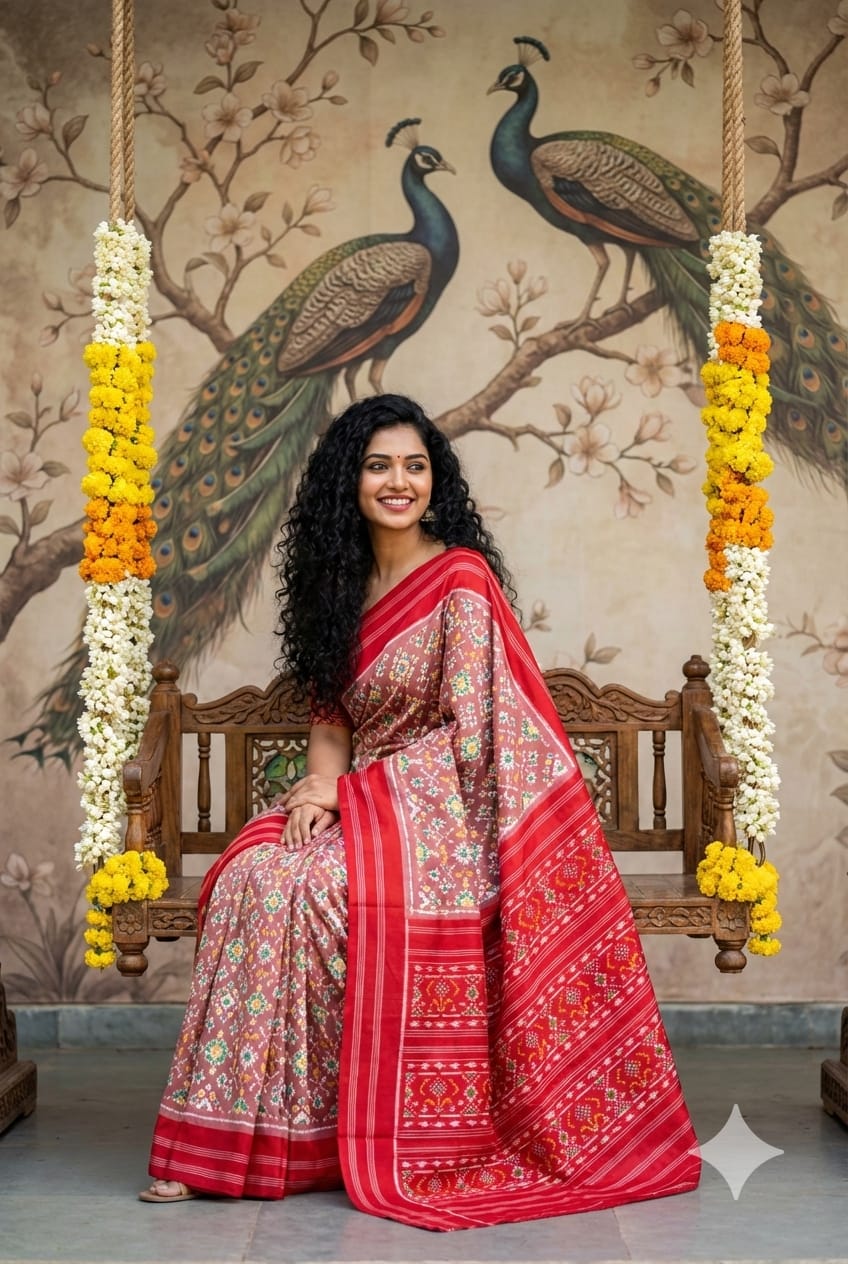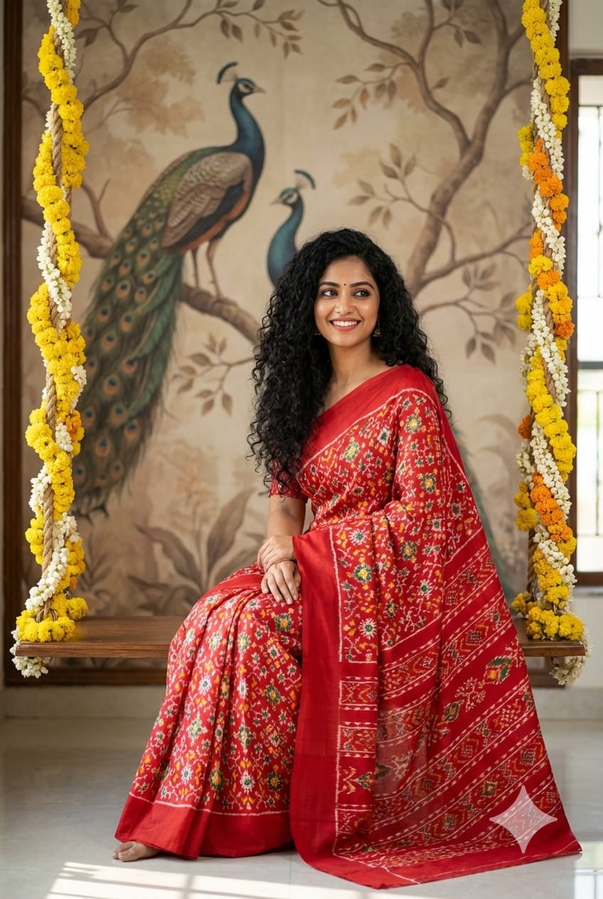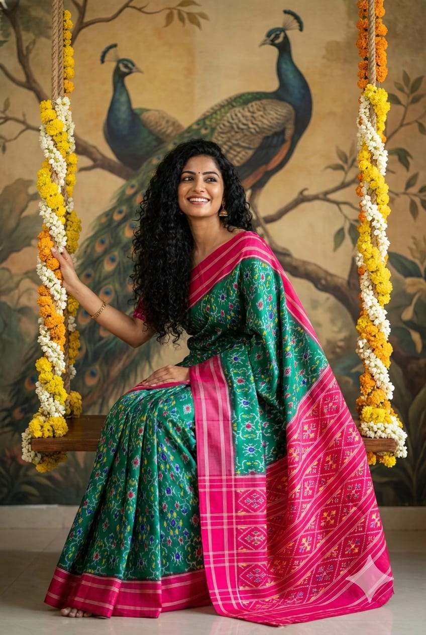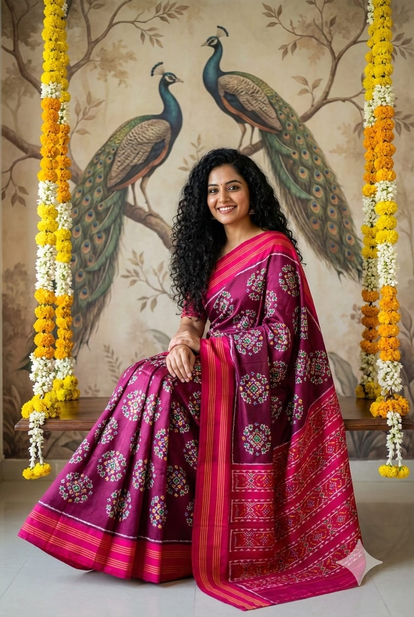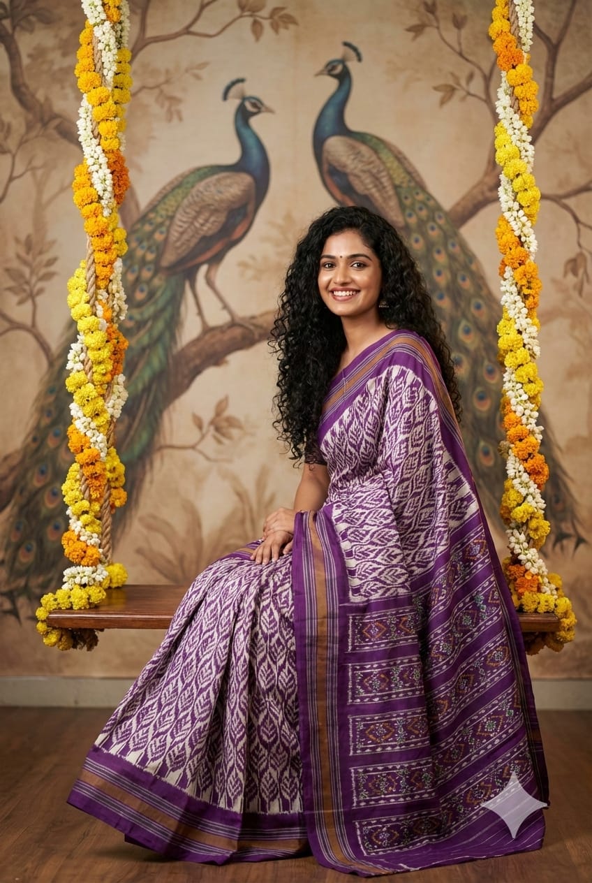 The Pochampally Pure Silk Saree is a symbol of South Indian weaving excellence. Originating from Bhoodan Pochampally, these sarees are famous for their intricate Ikat dyeing technique, where the yarns are tie-dyed before weaving to create stunning geometric and traditional patterns.