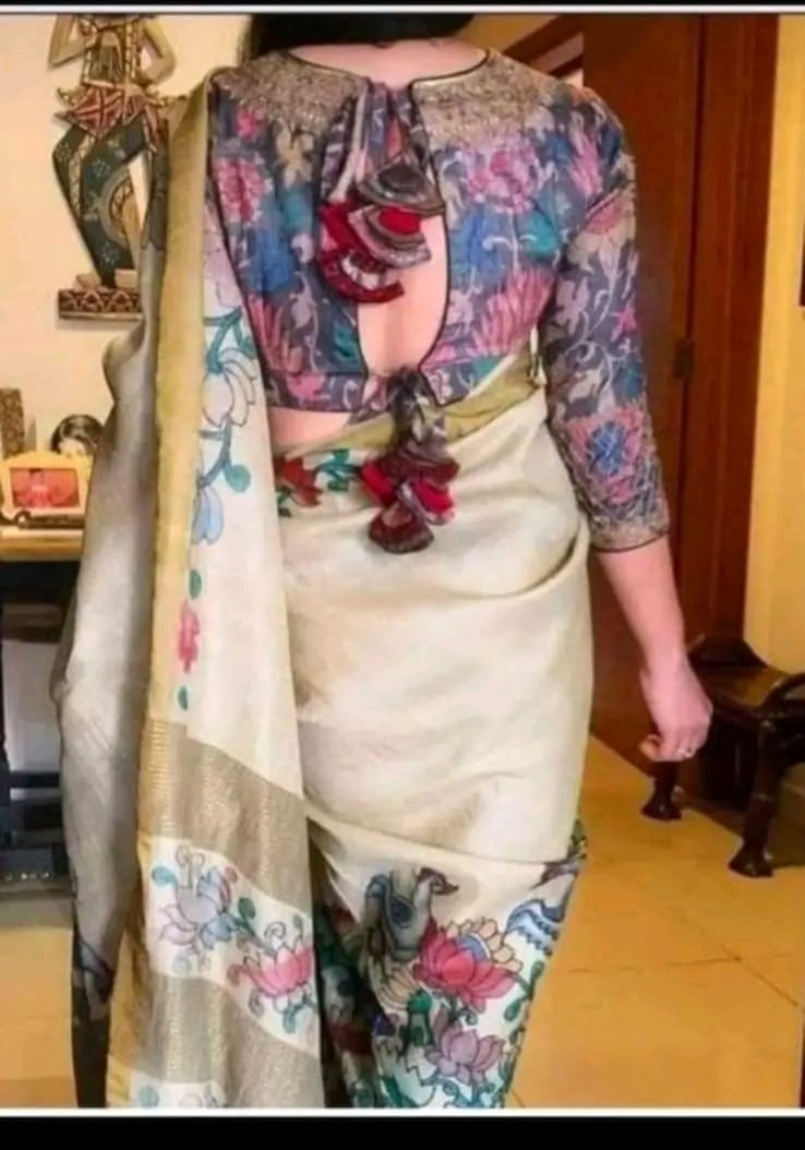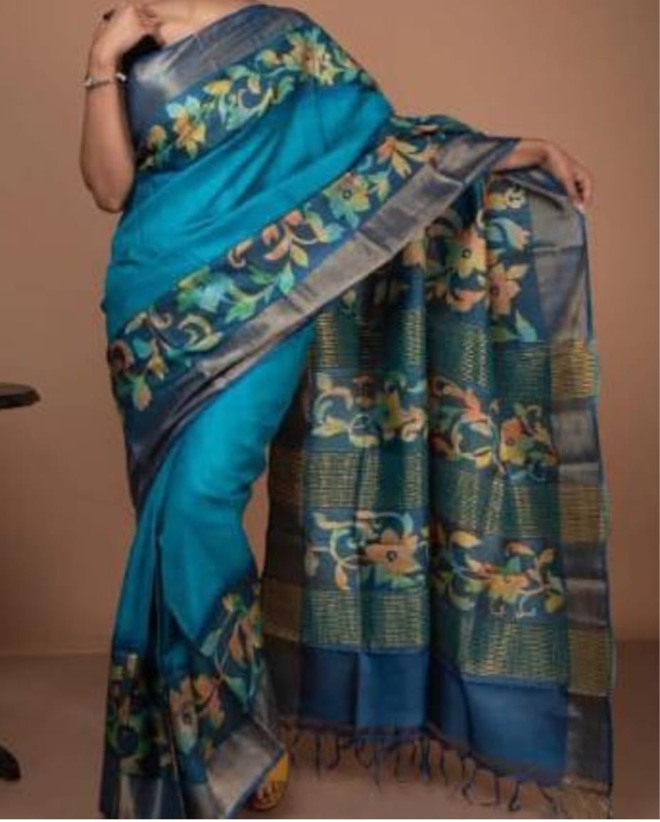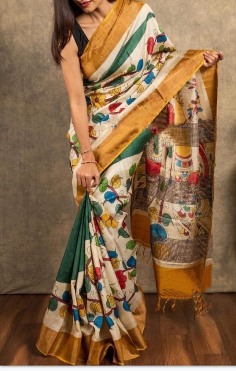 Kalamkari zari border handloom tussar saree