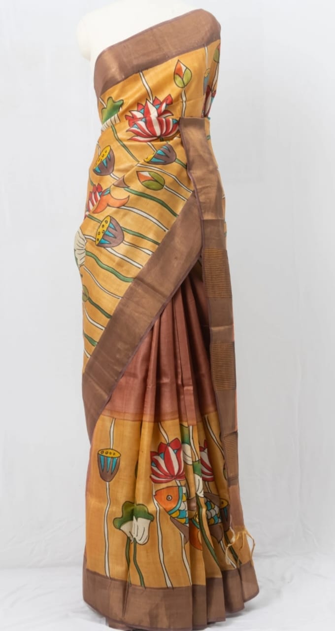 hand kalamkari on pure zari border handloom tussre