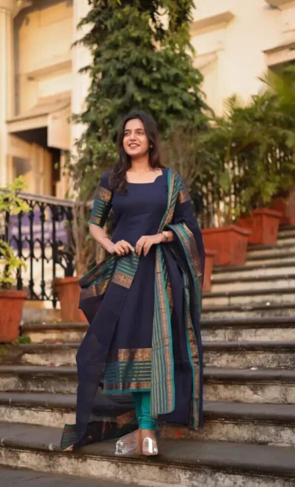 Featuring Beautiful Suit Sets in pure KANCHI COTTON Top Matching Leggies with duppta with jcard wiving, it is beautifully decorated desgins prints and hand zari wiving