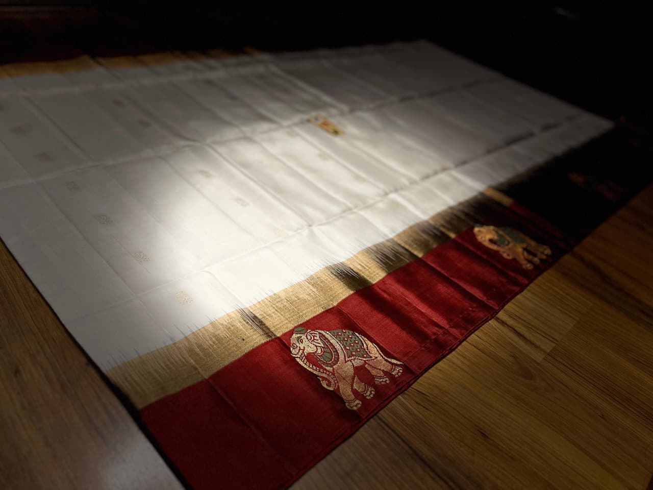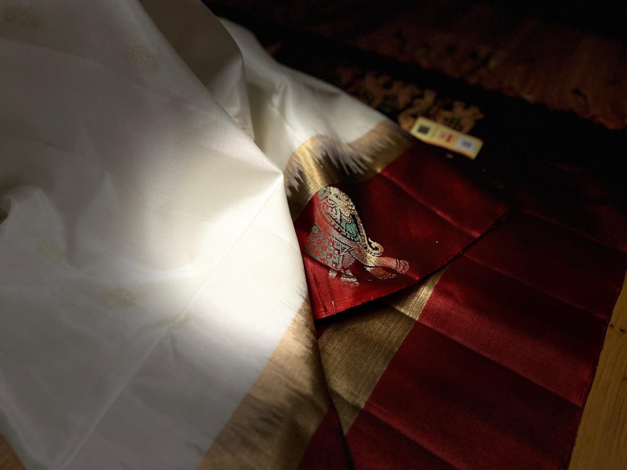 Always dry-clean pure silk saris to preserve the fabric’s sheen and colour. Avoid Washing at Home: Never machine wash; water and detergents can damage silk fibres. Store in a Cool, Dry Place: Keep saris away from direct sunlight and moisture. Wrap each sari in a soft cotton or muslin cloth before storing to allow it to breathe. Refold the sari every 3–4 months to prevent permanent creases and tearing along folds. Instead, use neem leaves or silica gel packets to prevent insects and moisture. Use a low-heat setting, or steam-iron the reverse side with a thin cloth on top. Jewellery Care Tips