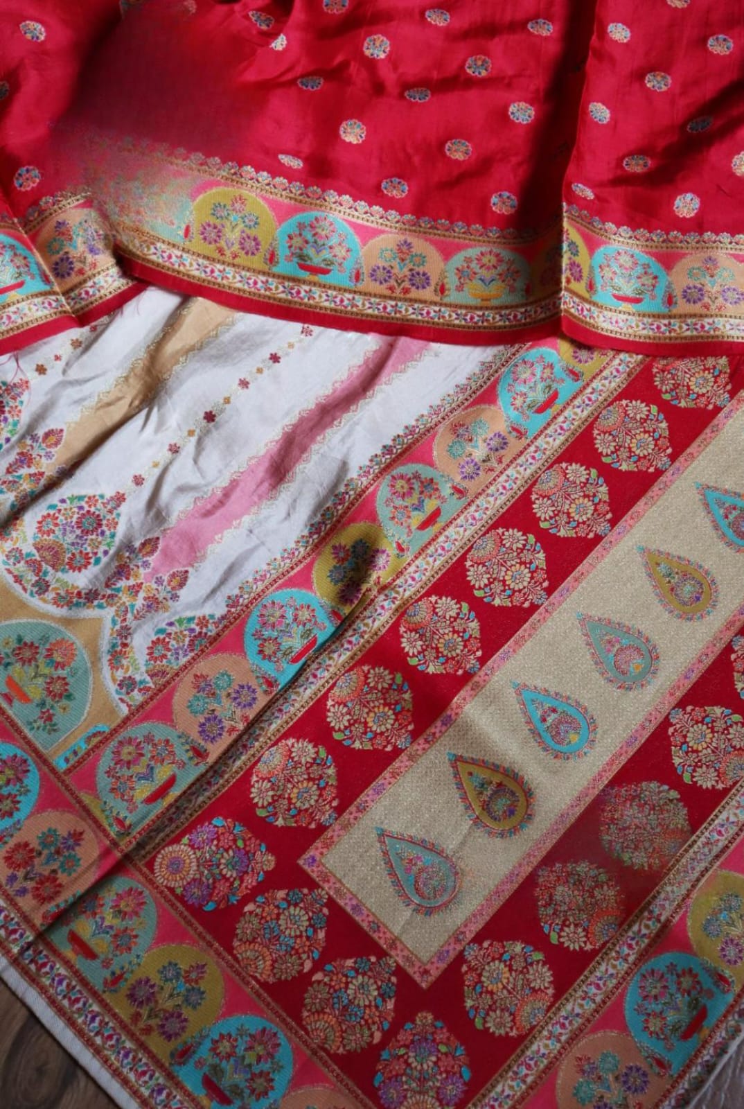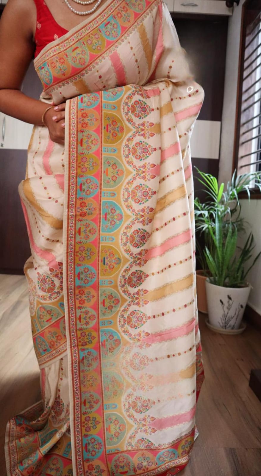Accompanied by a contrast silk blouse piece that perfectly complements the saree, exuding elegance.