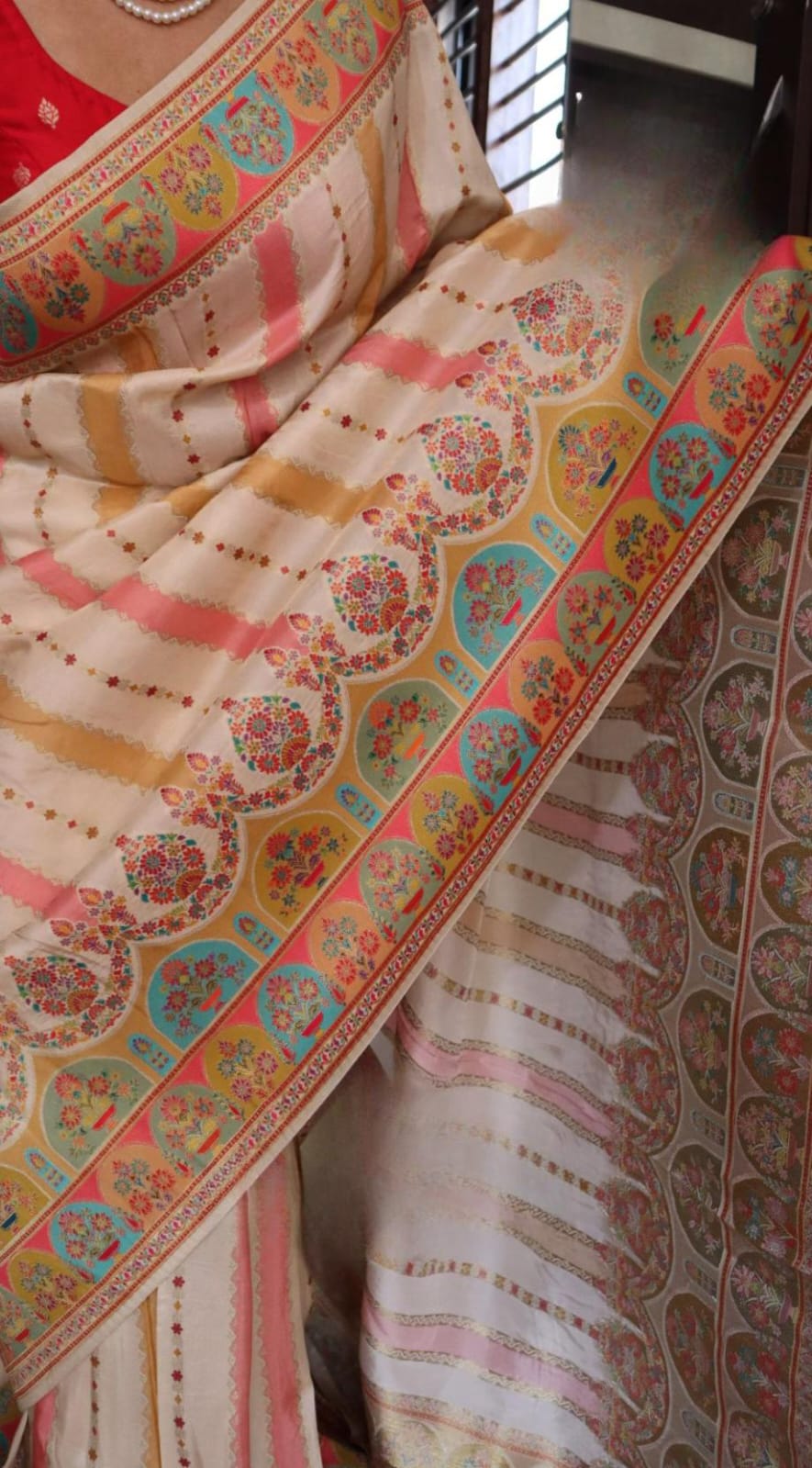 These sarees have no extra threads. Kani weaving is in brocade fabric.