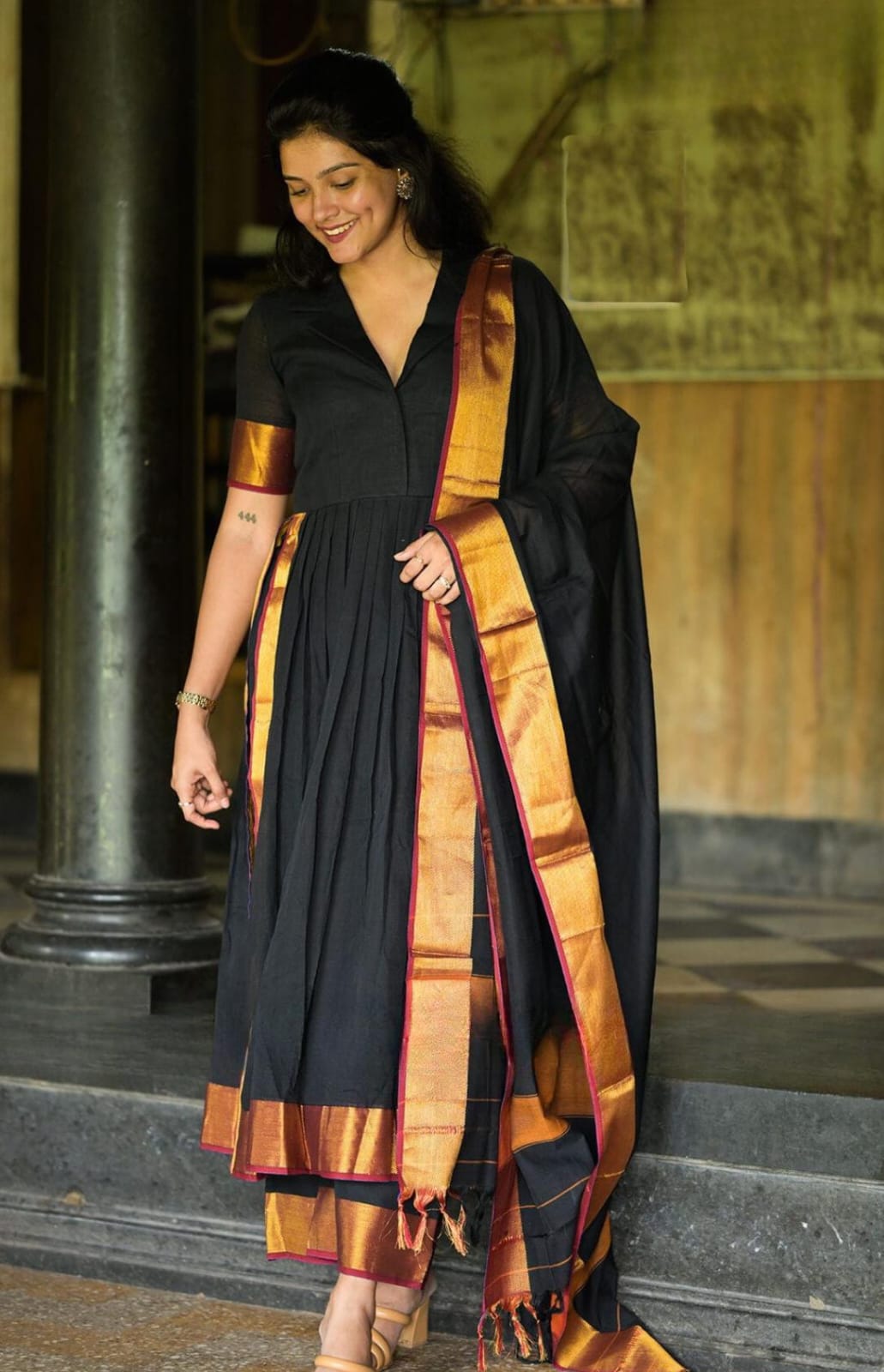 Finding the perfect, comfortable outfit for all-day wear can be challenging. Worry not – our Black Handloom Suit is here for you. It is designed for ultimate comfort and features a detailed collar neckline, making it ideal for office wear. The striking royal blue color adds a touch of elegance, helping you stand out even on a Monday. Pair it with minimal accessories for a sophisticated look. (Side Zip attached)