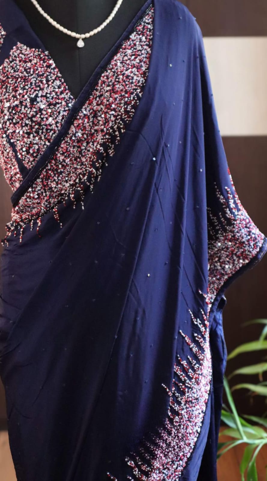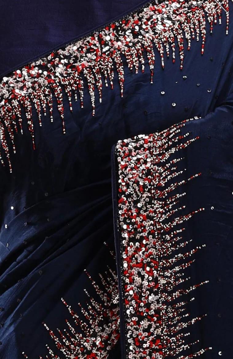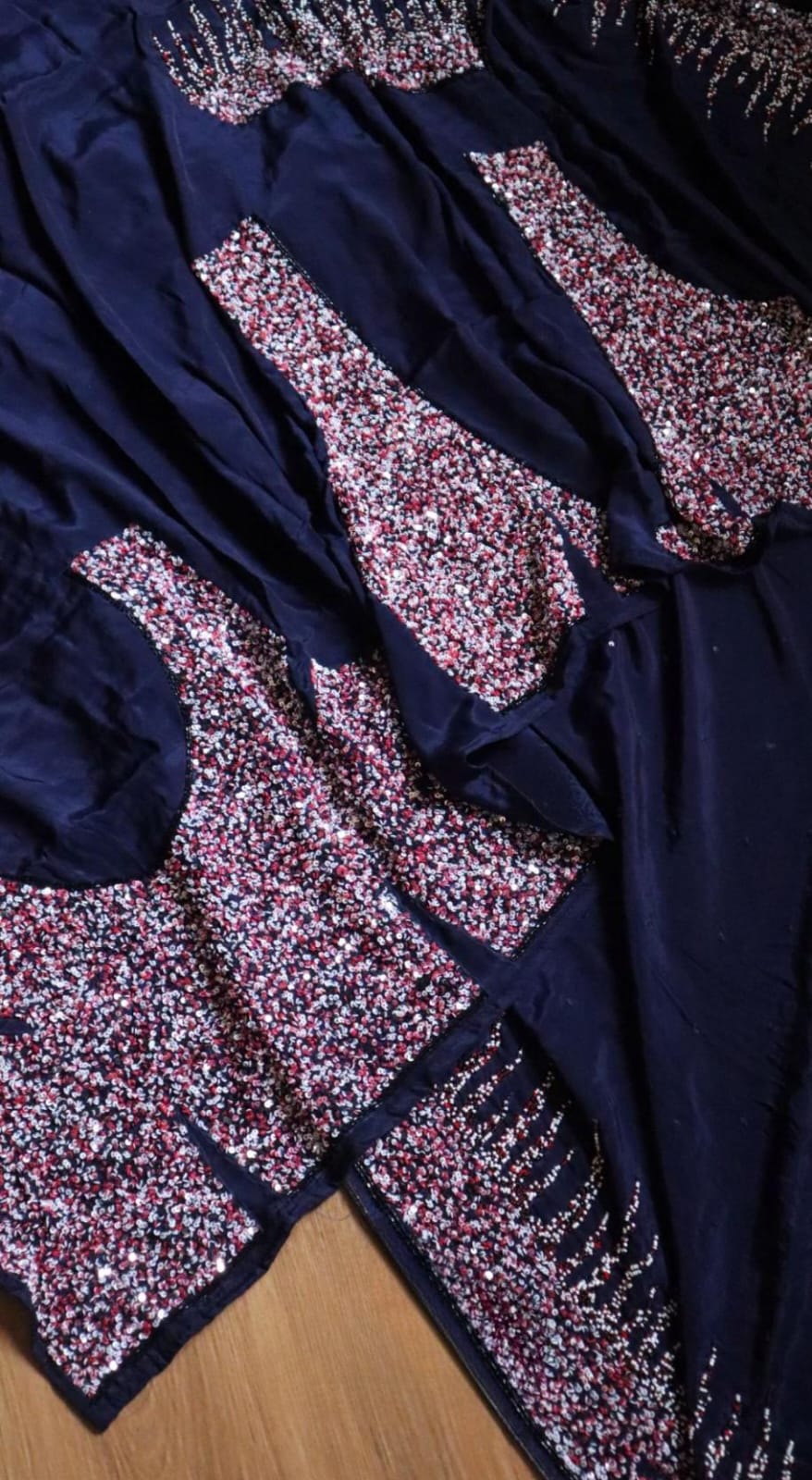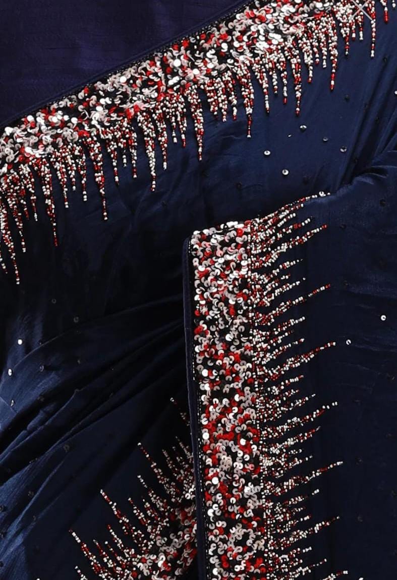 Navy Blue Sequins Embroidered Designer Crepe Saree