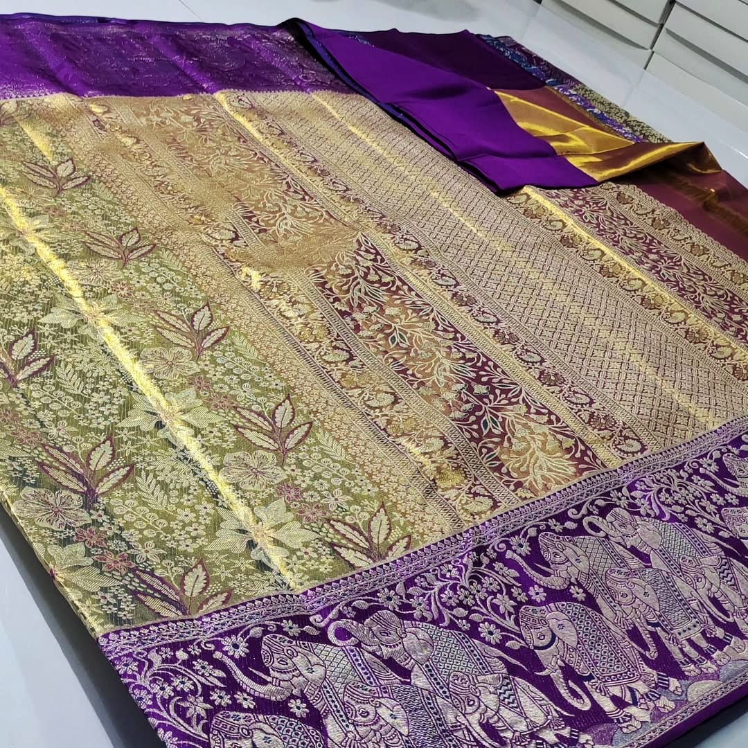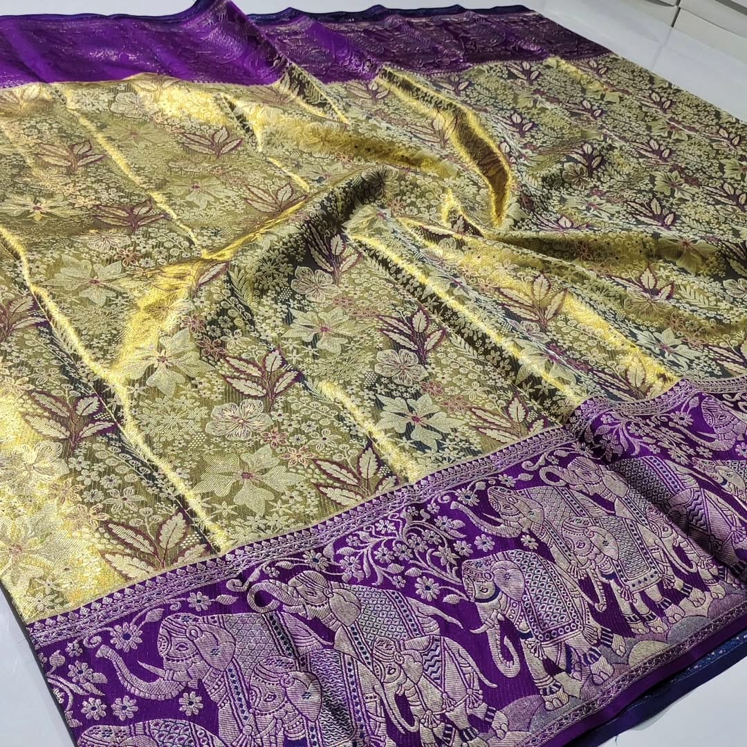 Designer pure kanchipattu tissue edge-to-edge resham warp meenakari brocade designs