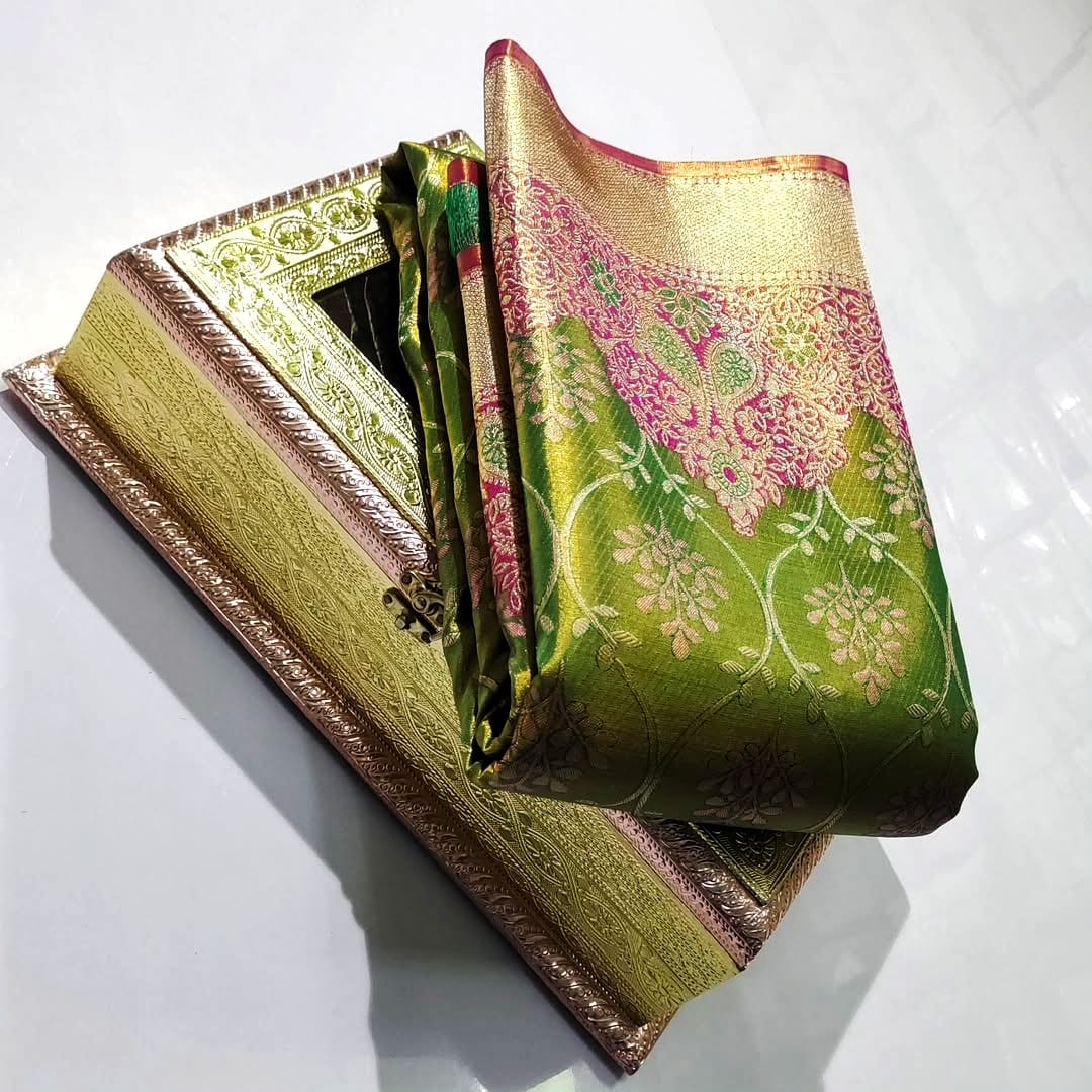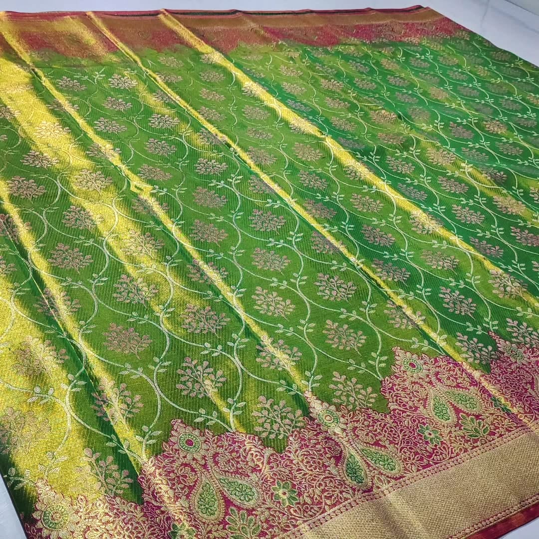 Premium Quality Tissue Bridal Silk Saree. Very Latest Design Indian Bridal Saree