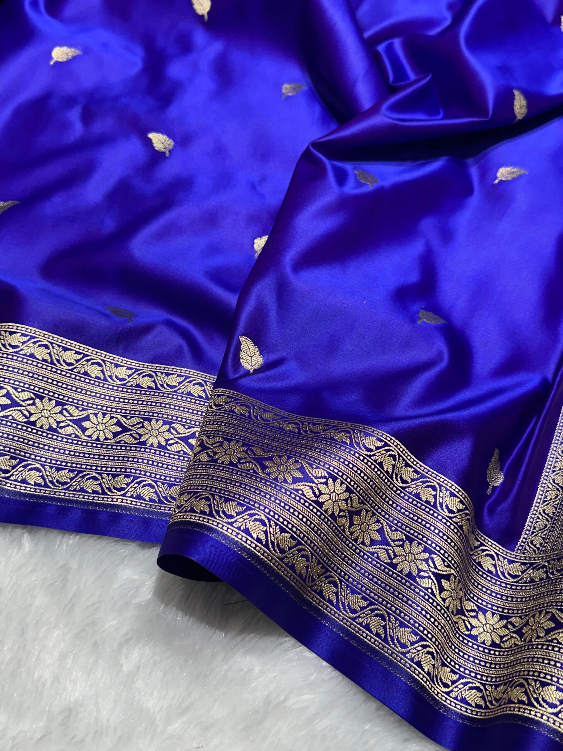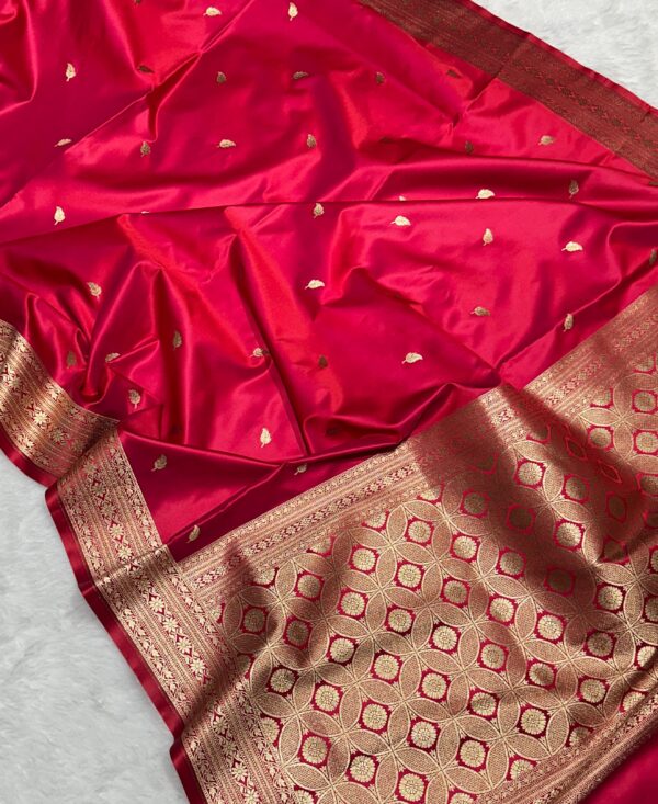 This exquisite **pure Mashru Katan silk saree is all-over jaal zari weaving, handwoven to perfection with a rich, royal texture.