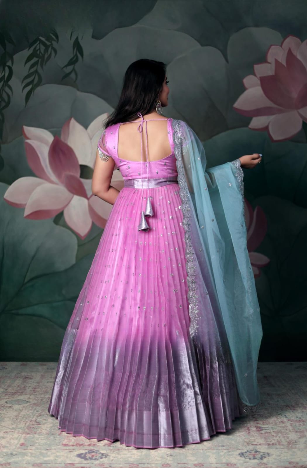 The dress features a mesmerizing shade of soft pink that radiates charm and sophistication. Crafted from premium-quality organza fabric, it boasts a lightweight and ethereal feel, allowing you to move gracefully and quickly. The intricate embroidery in silver zari thread adorns the entire dress, creating a stunning visual impact that will leave everyone in awe.