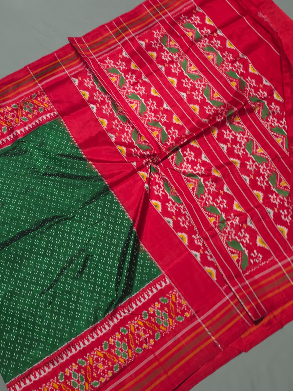 Each saree is carefully handwoven using premium-quality pure silk threads, offering a luxurious feel and graceful fall. The vibrant color combinations and symmetrical motifs make it a perfect choice for weddings, festive gatherings, and special occasions.