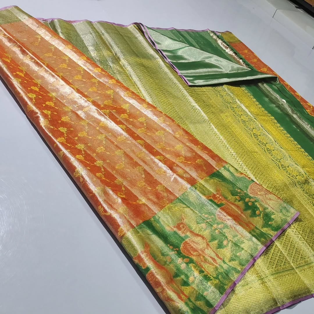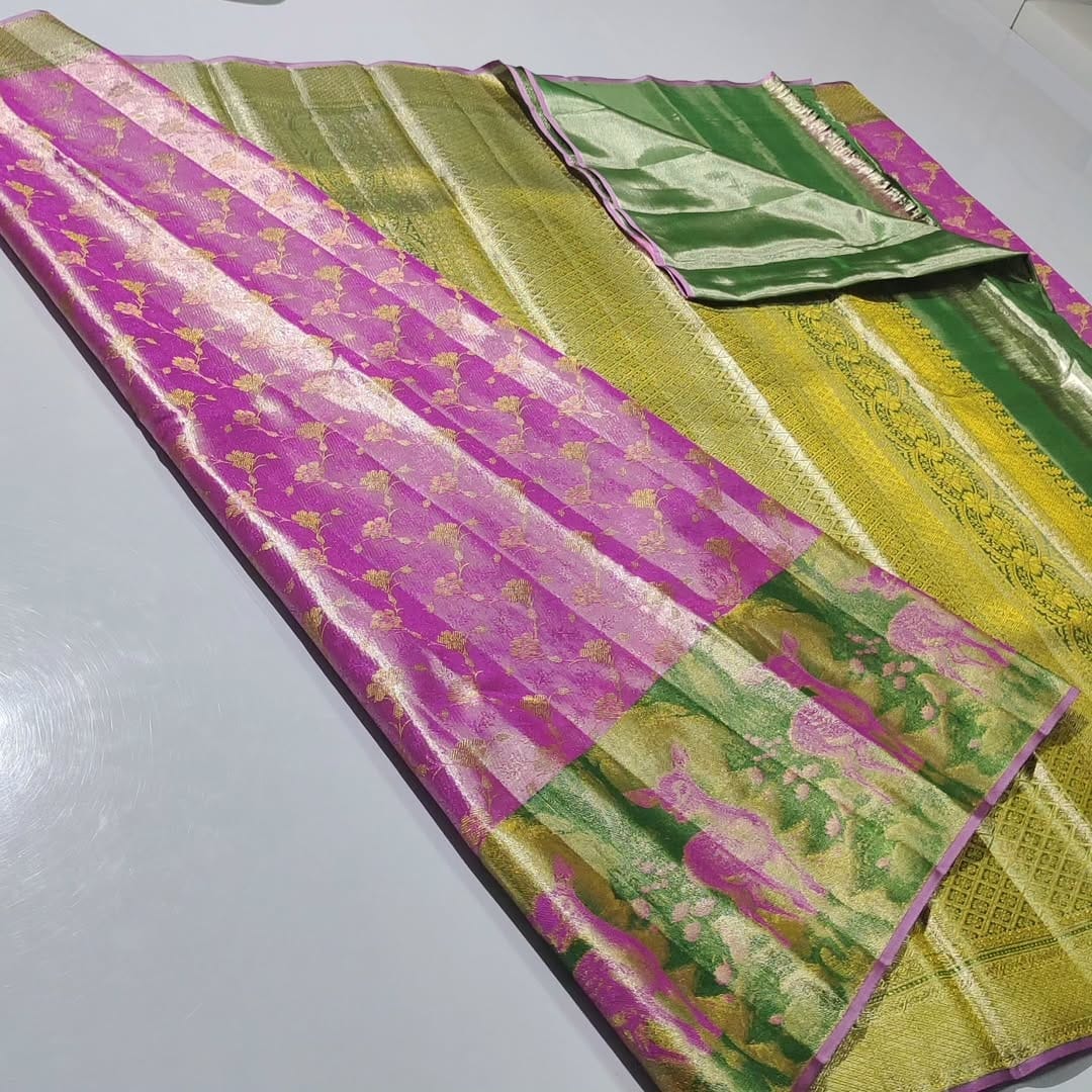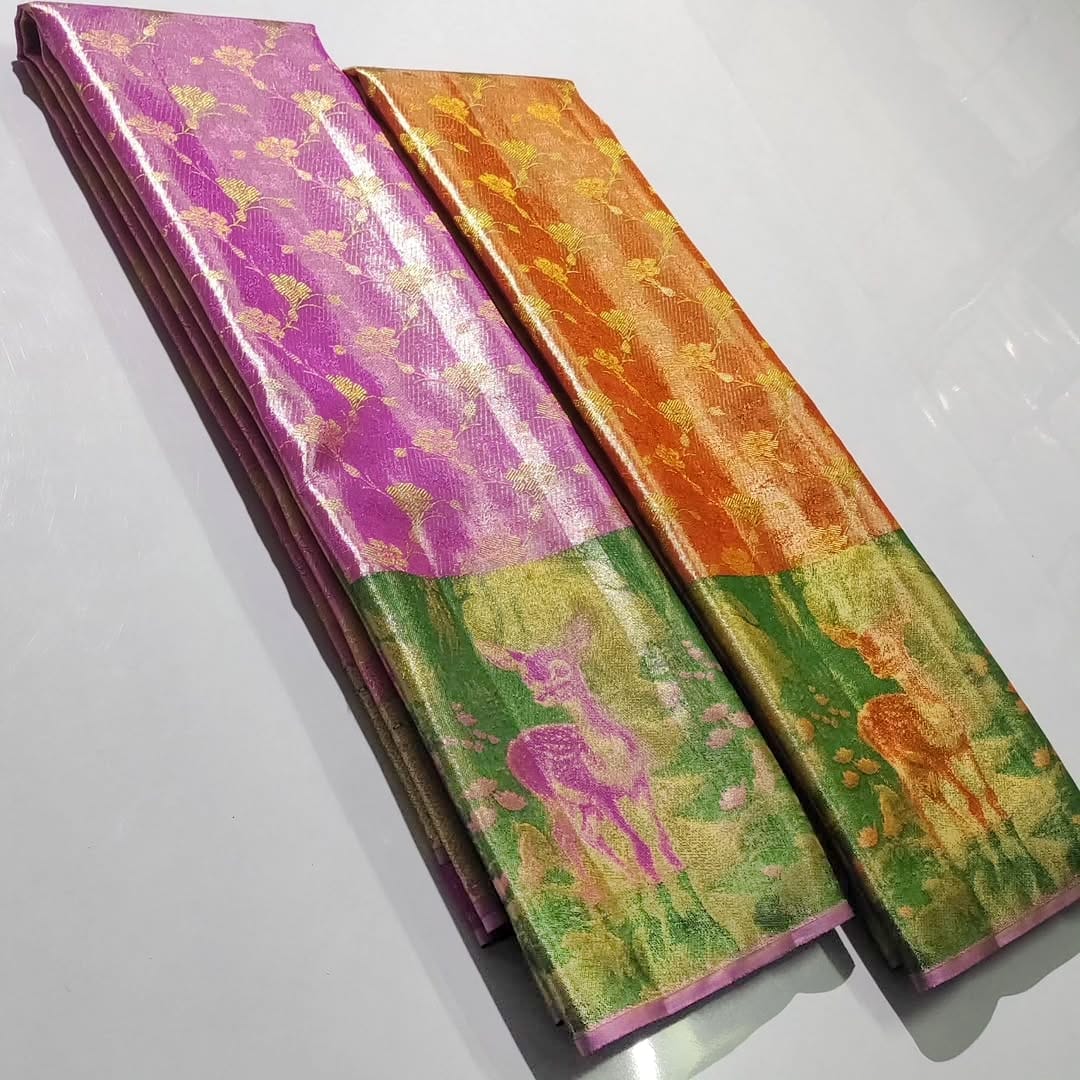 Premium quality pure kanchipattu tissue edge-to-edge deer brocade designs