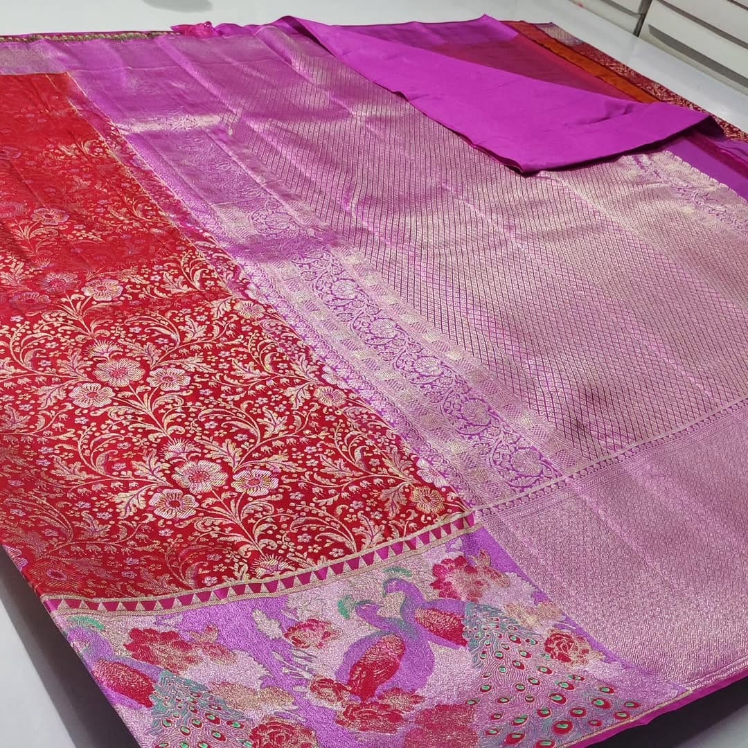 Pretty collection pure kanchipattu resham warp meenakari brocade designs