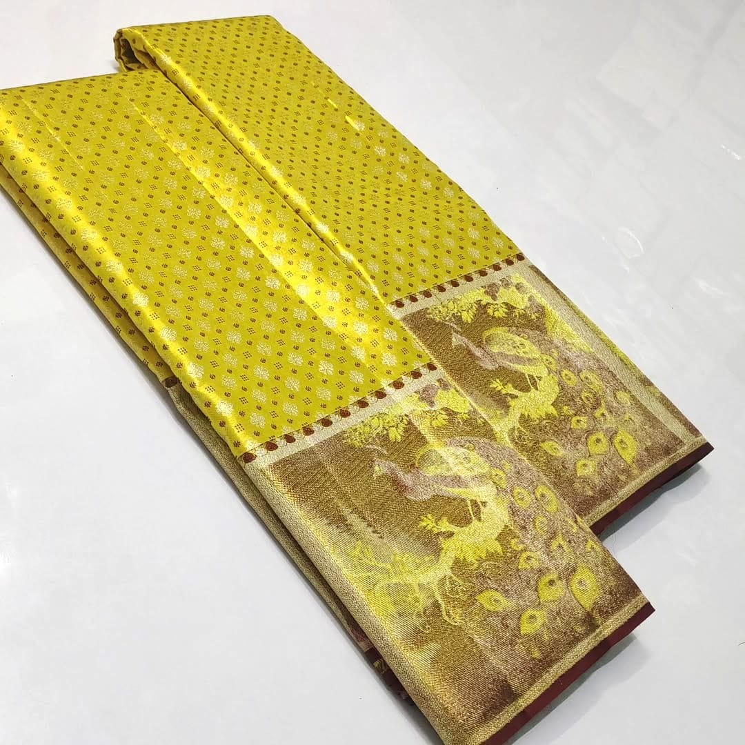 Pretty collection pure kanchipuram tissue meenakari with all over butties designs