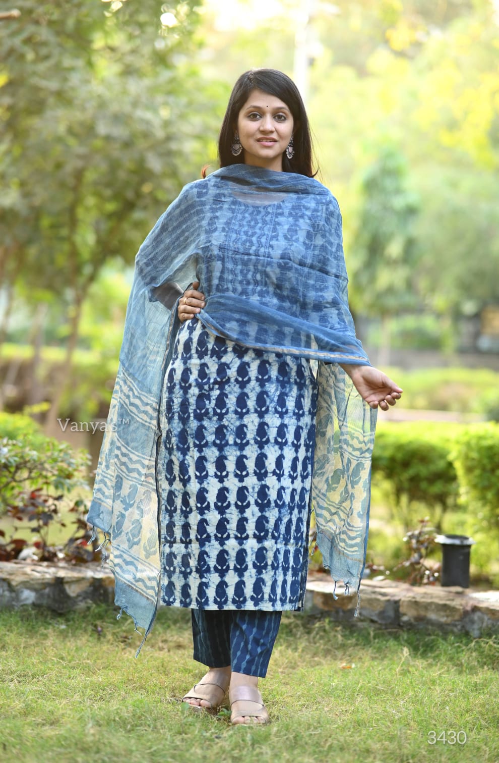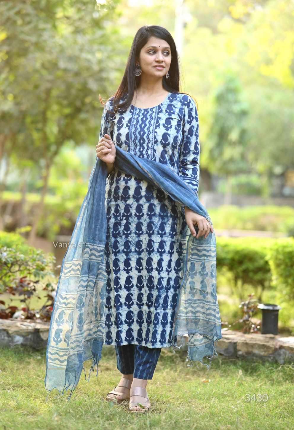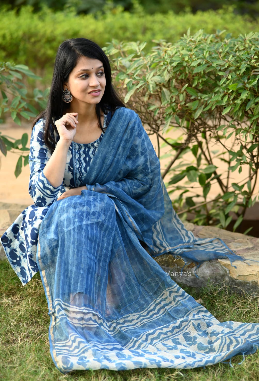 A captivating Bagru hand block printed suit set in deep indigo blue, crafted from soft cotton fabric, featuring traditional patterns for a timeless and elegant look.
