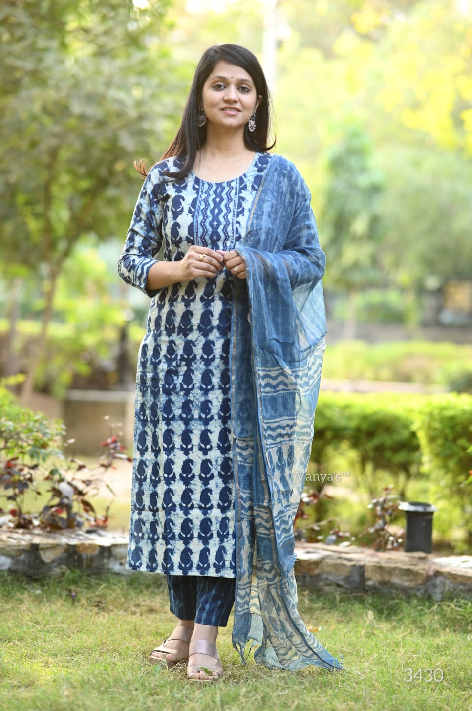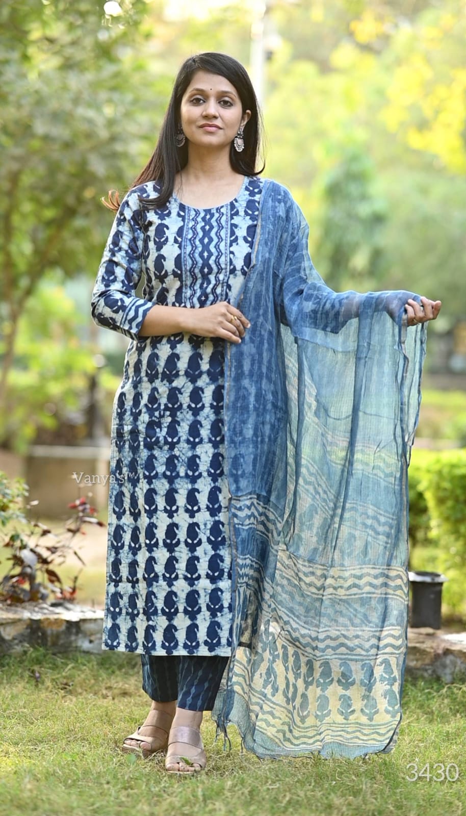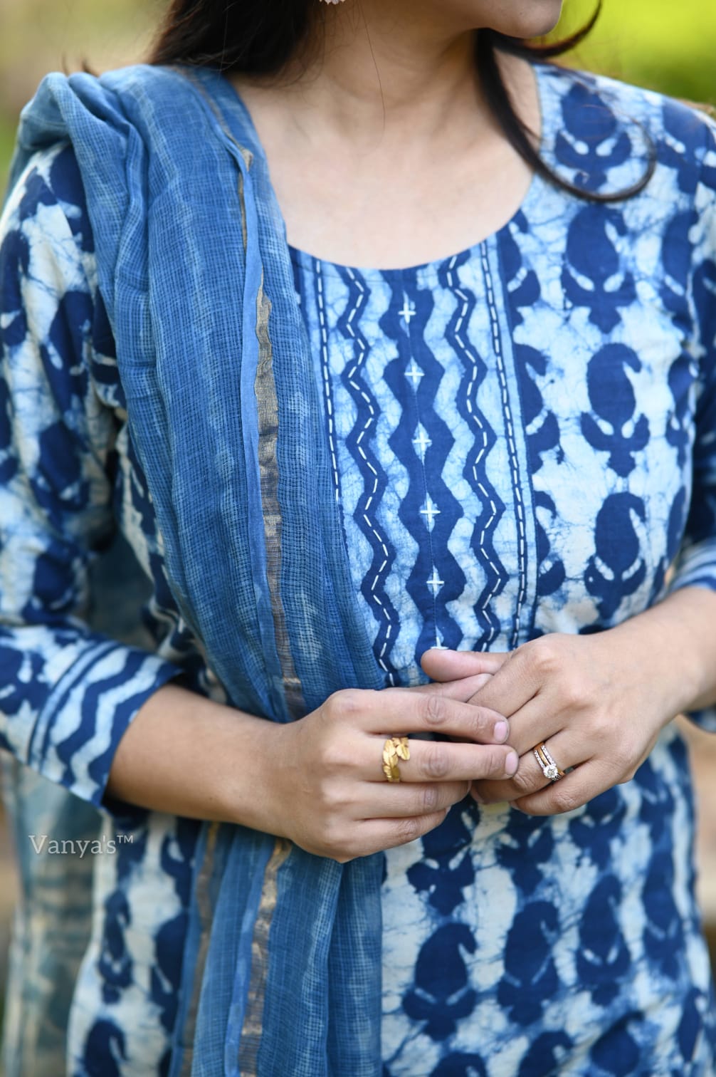 A captivating Bagru hand block printed suit set in deep indigo blue, crafted from soft cotton fabric, featuring traditional patterns for a timeless and elegant look.