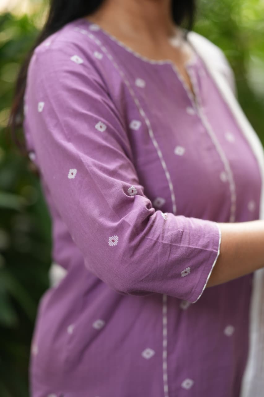 Pure South cotton weaving Pattu Narayani handloom ikkat kurti Paired with handloom cotton pants and handloom south cotton dupatta, perfect for casual and occasional outings.
