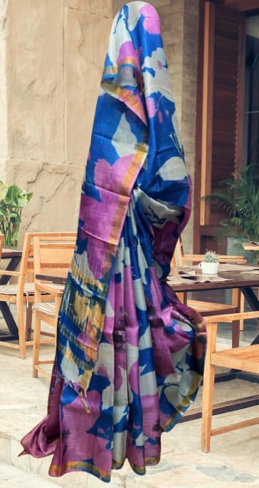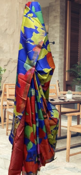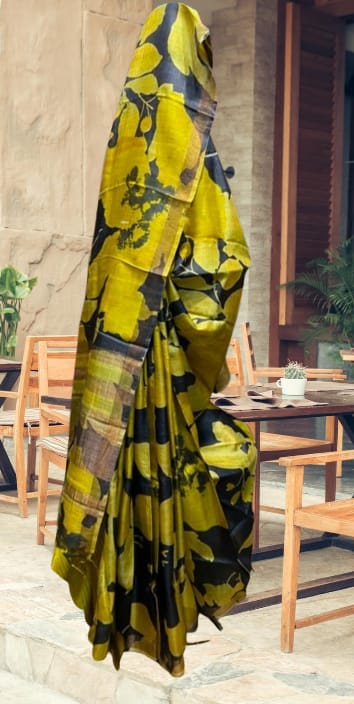 Pure handloom tusser saree with free hand hand painted saree ₹ 5,500.00