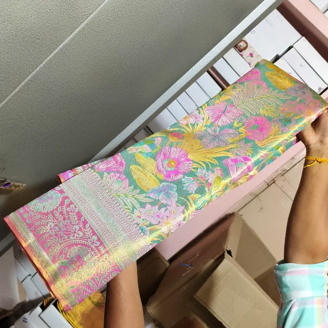 Special pure kanchipattu tissue edge to edge 4d meenakari brocade designs ✨