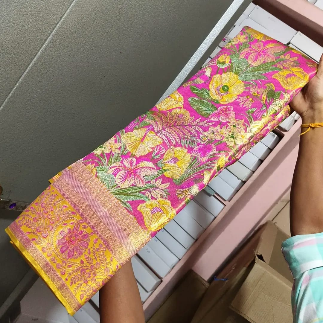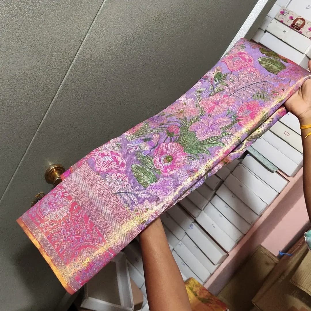 New Pure kanchi pattu tissue floral 4d exclusive designs